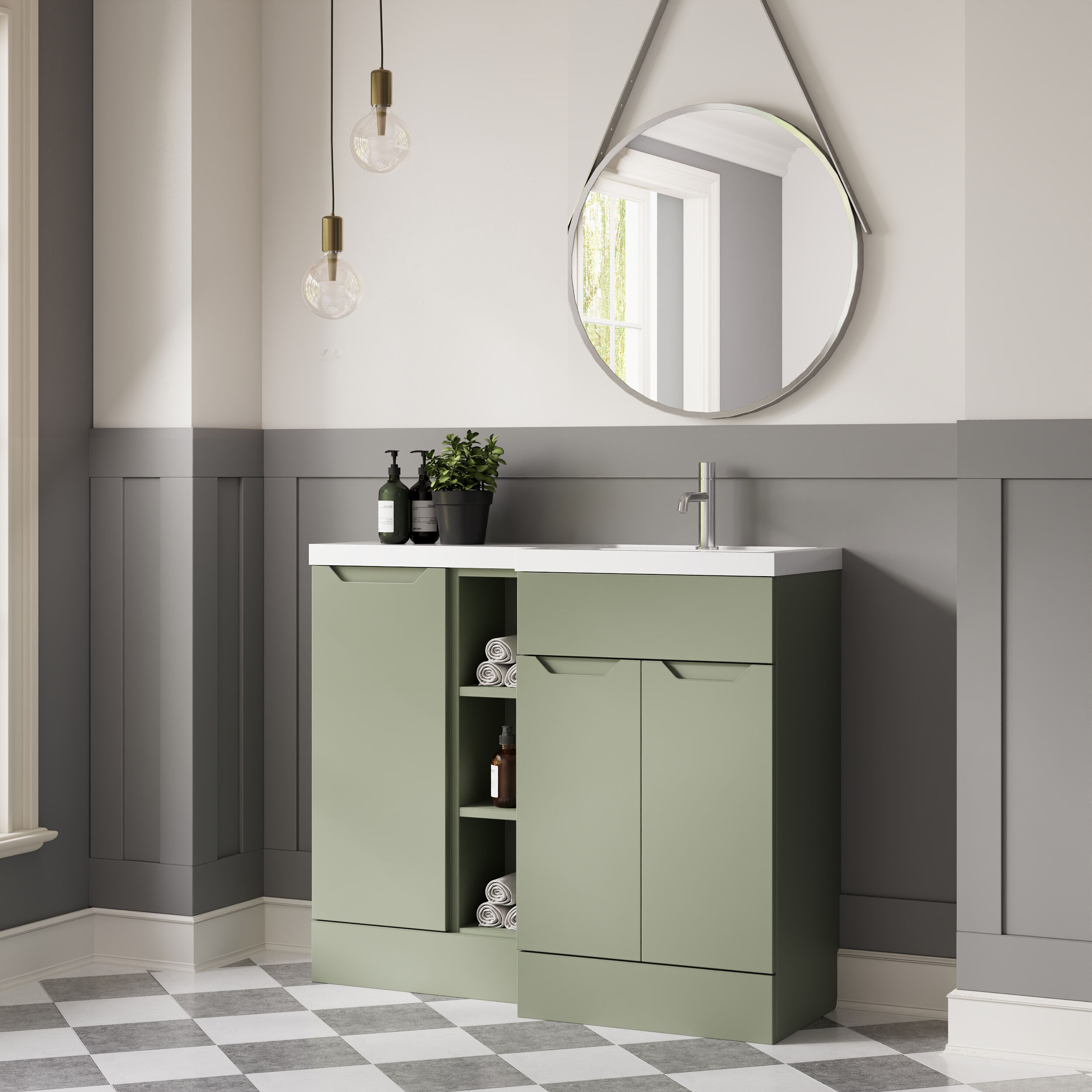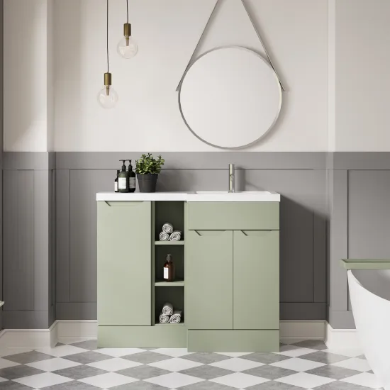 Nuie Lux Loave 1000mm Full Depth Combination Unit & L-Shaped Basin - Right Hand - Reed Green