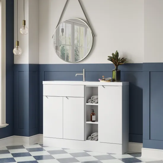 Nuie Lux Loave 1100mm Handleless Combination Unit & Basin With Soft Close Doors & Drawers