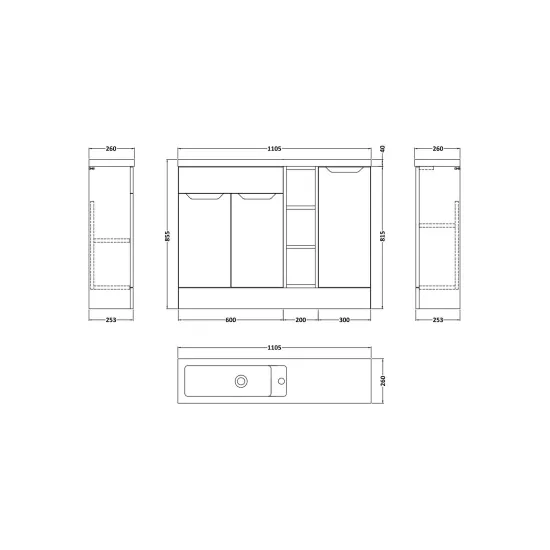 Nuie Lux Loave 1100mm Combination Unit & Basin With Soft Close Doors & Drawers