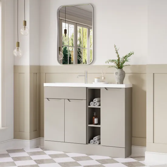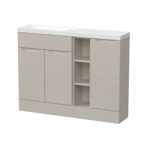 Nuie Lux Loave 1100mm Handleless Pebble Grey Combination Unit & Basin with Soft Close Doors