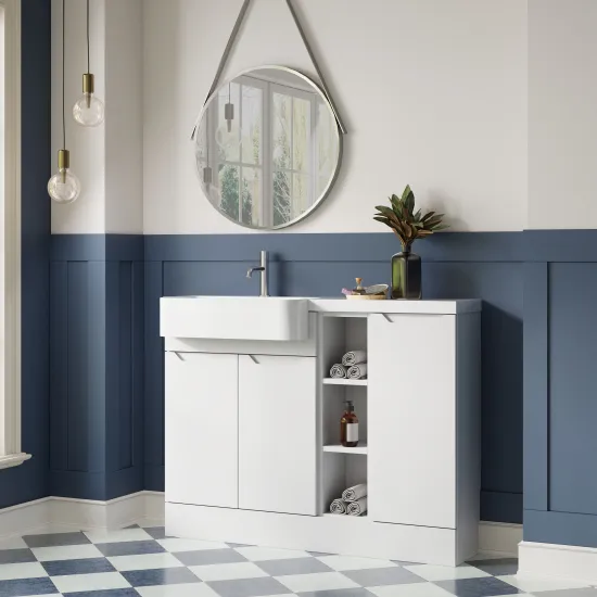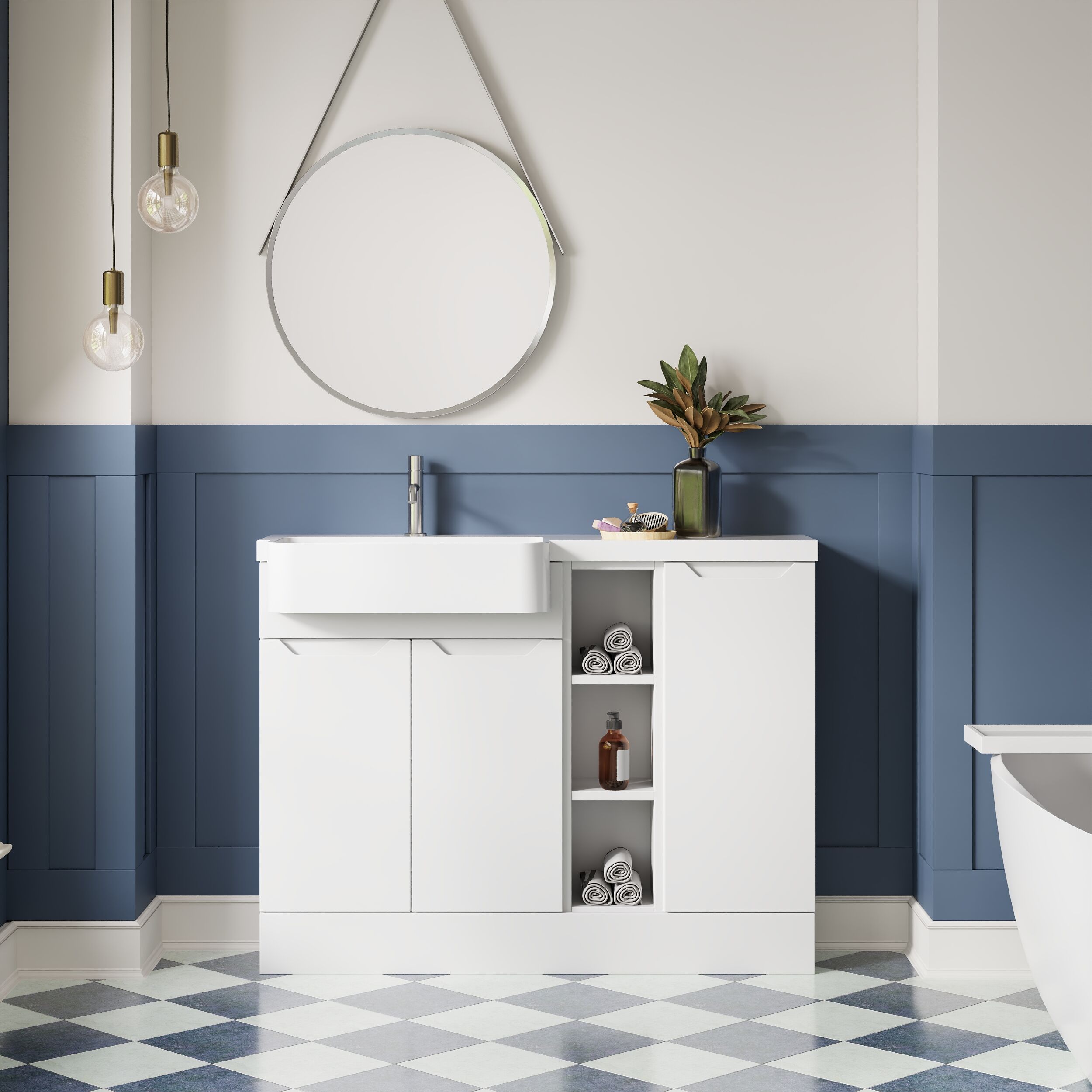 Nuie Lux Loave 1100mm Compact Combination Unit & Basin - Left Hand - Matt White