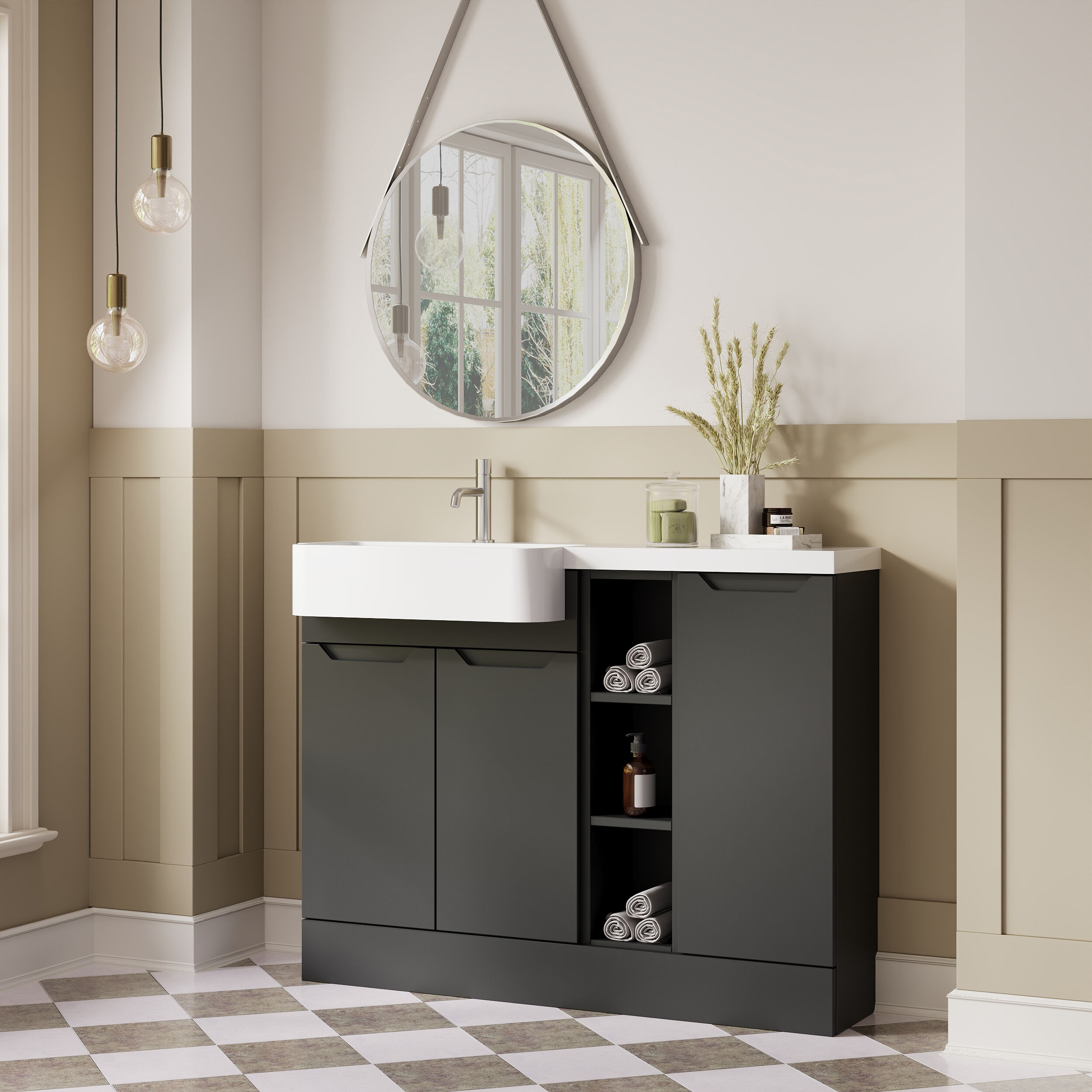 Nuie Lux Loave 1100mm Compact Combination Unit & Basin - Left Hand - Soft Black
