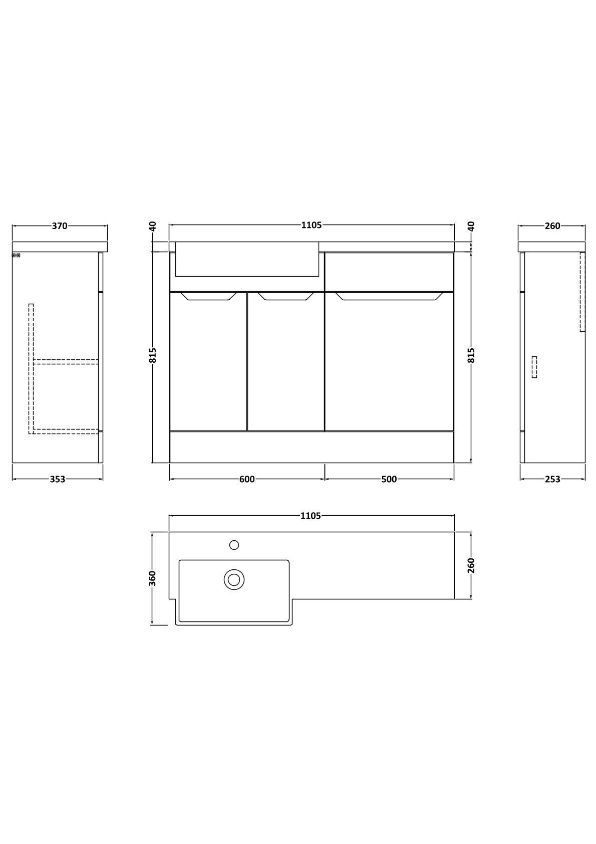 Supplied with luxury polymarble left-hand basin, predrilled with 1 tap hole.