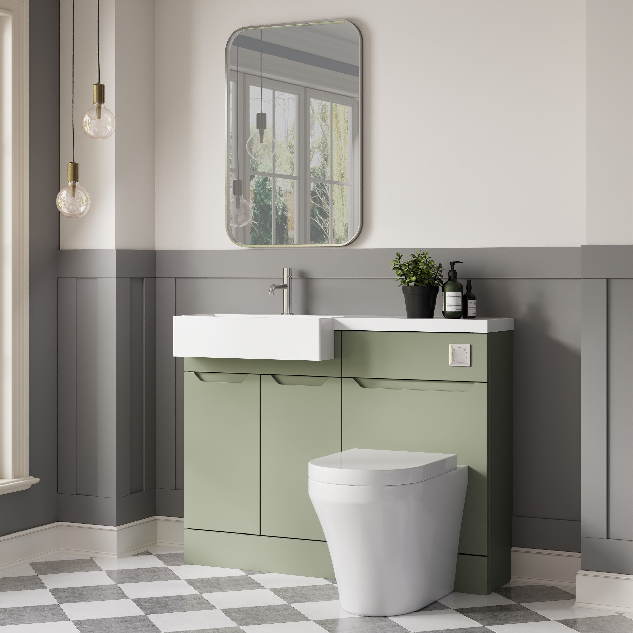 Nuie Lux Loave 1100mm Compact Combination Unit & Basin - Left Hand - Reed Green