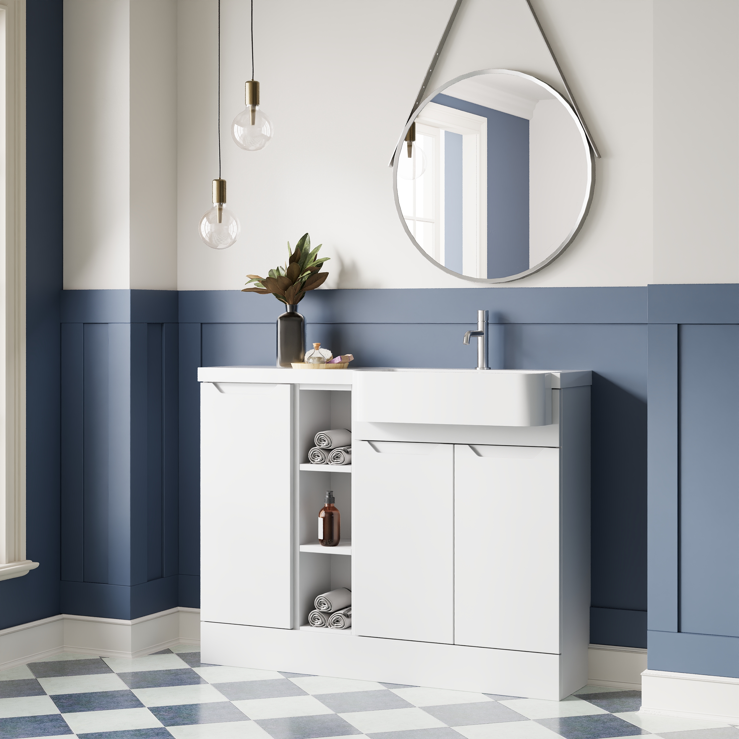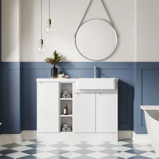 Nuie Lux Loave 1100mm Compact Combination Unit & Basin - Right Hand - Matt White
