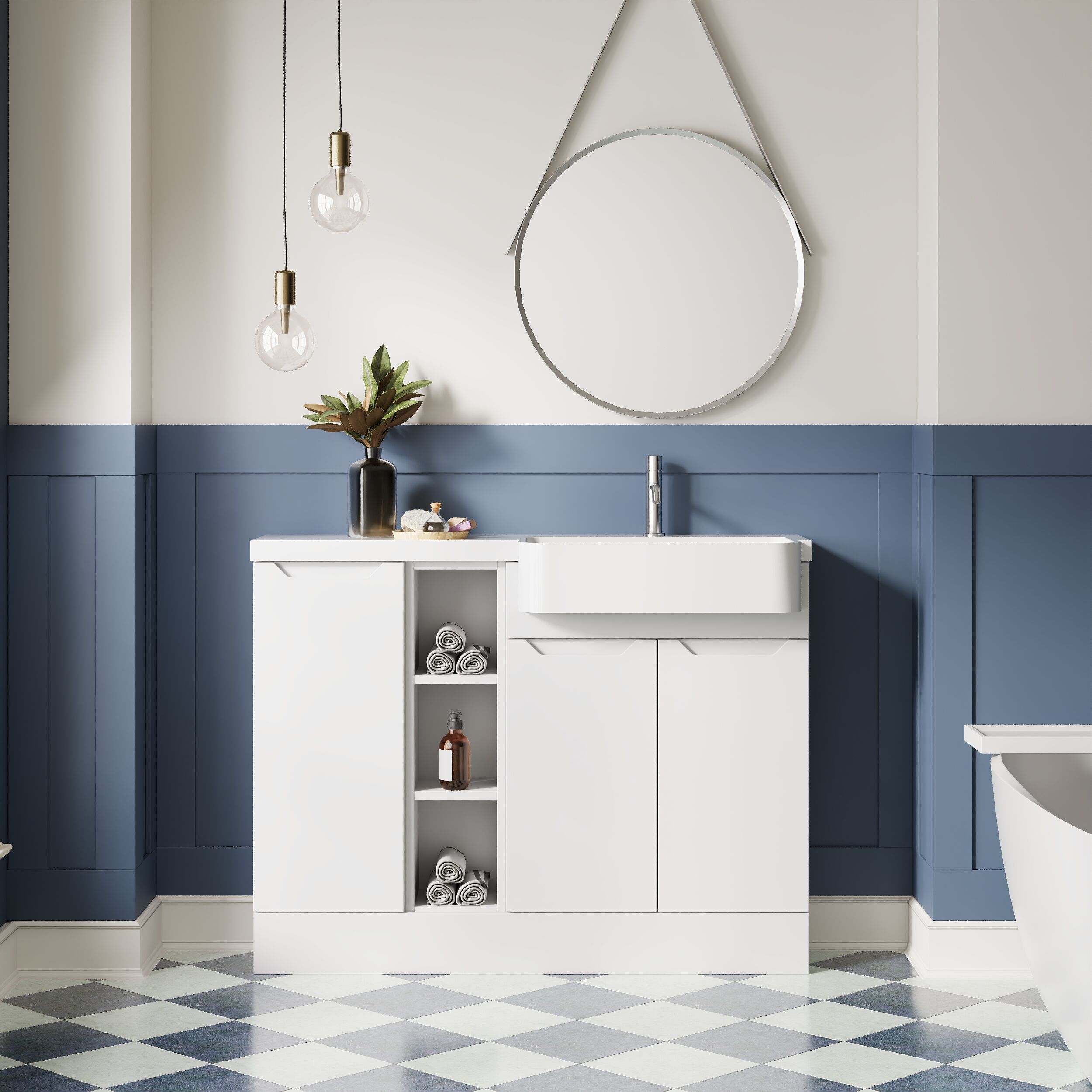 Nuie Lux Loave 1105mm Matt White Right Hand Handleless Combination Unit & Basin Rigid Soft Close