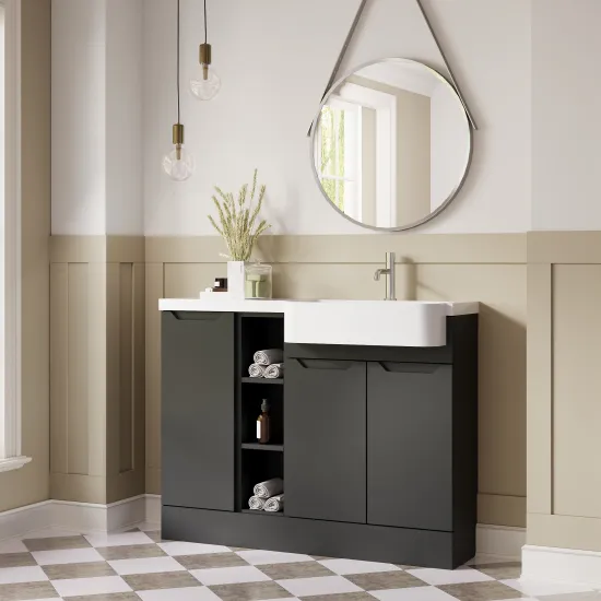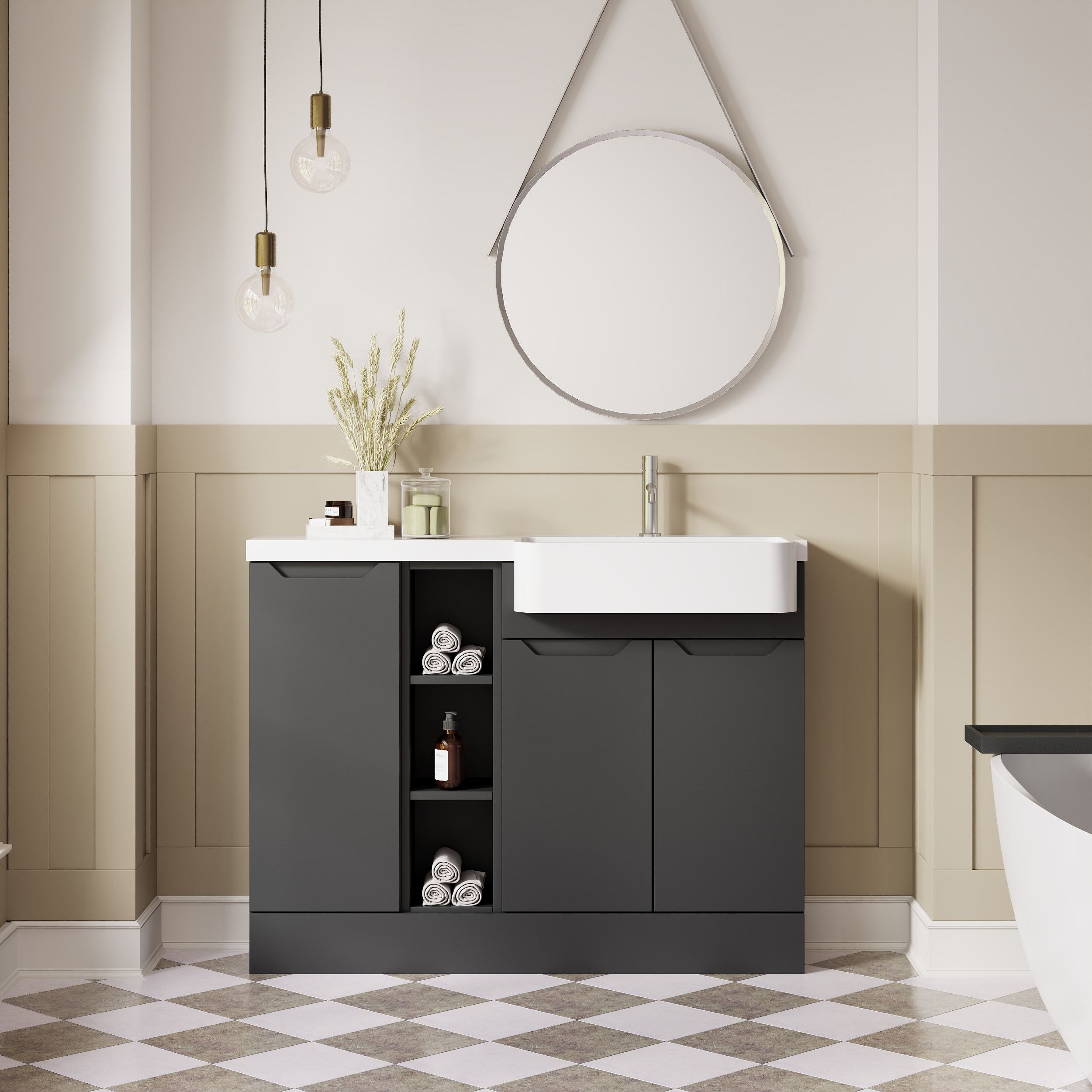 Nuie Lux Loave 1100mm Compact Combination Unit & Basin - Right Hand - Soft Black
