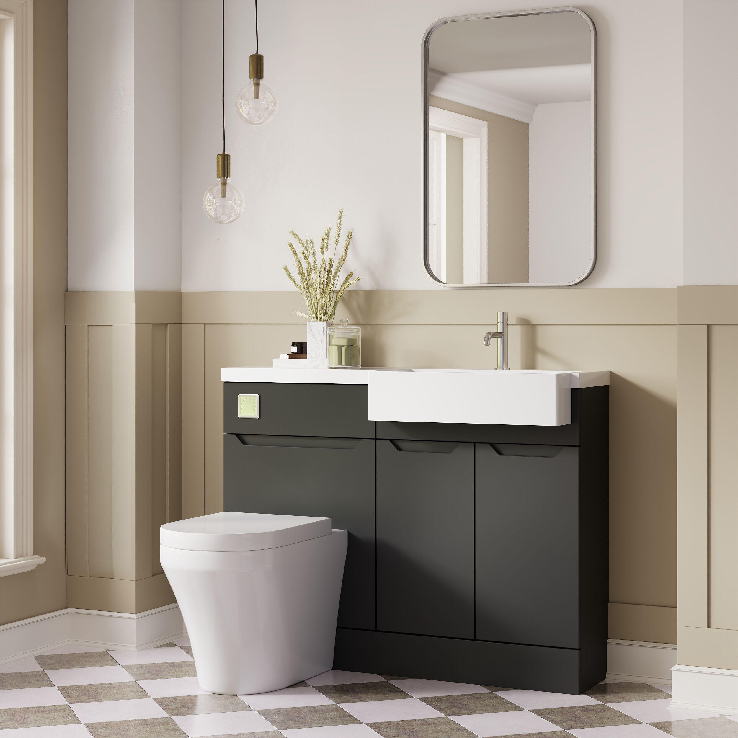 Nuie Lux Loave 1100mm Compact Combination Unit & Basin - Right Hand - Soft Black