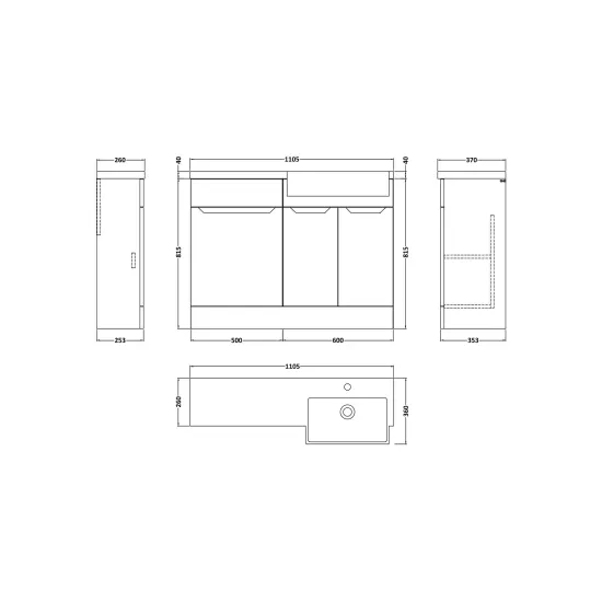 Nuie Lux Loave 1100mm Combination Unit & Basin Right Hand