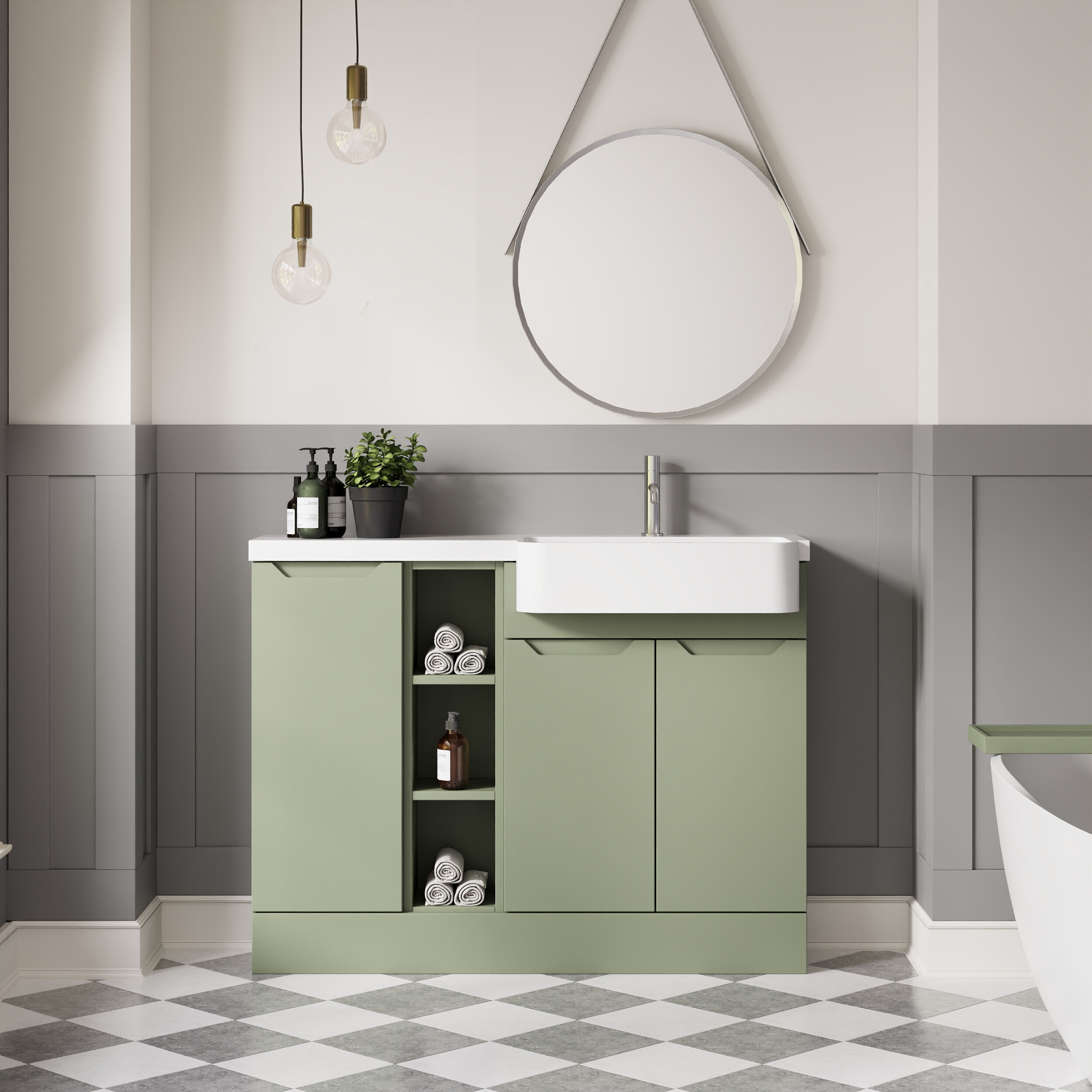 Nuie Lux Loave 1100mm Compact Combination Unit & Basin - Right Hand - Reed Green