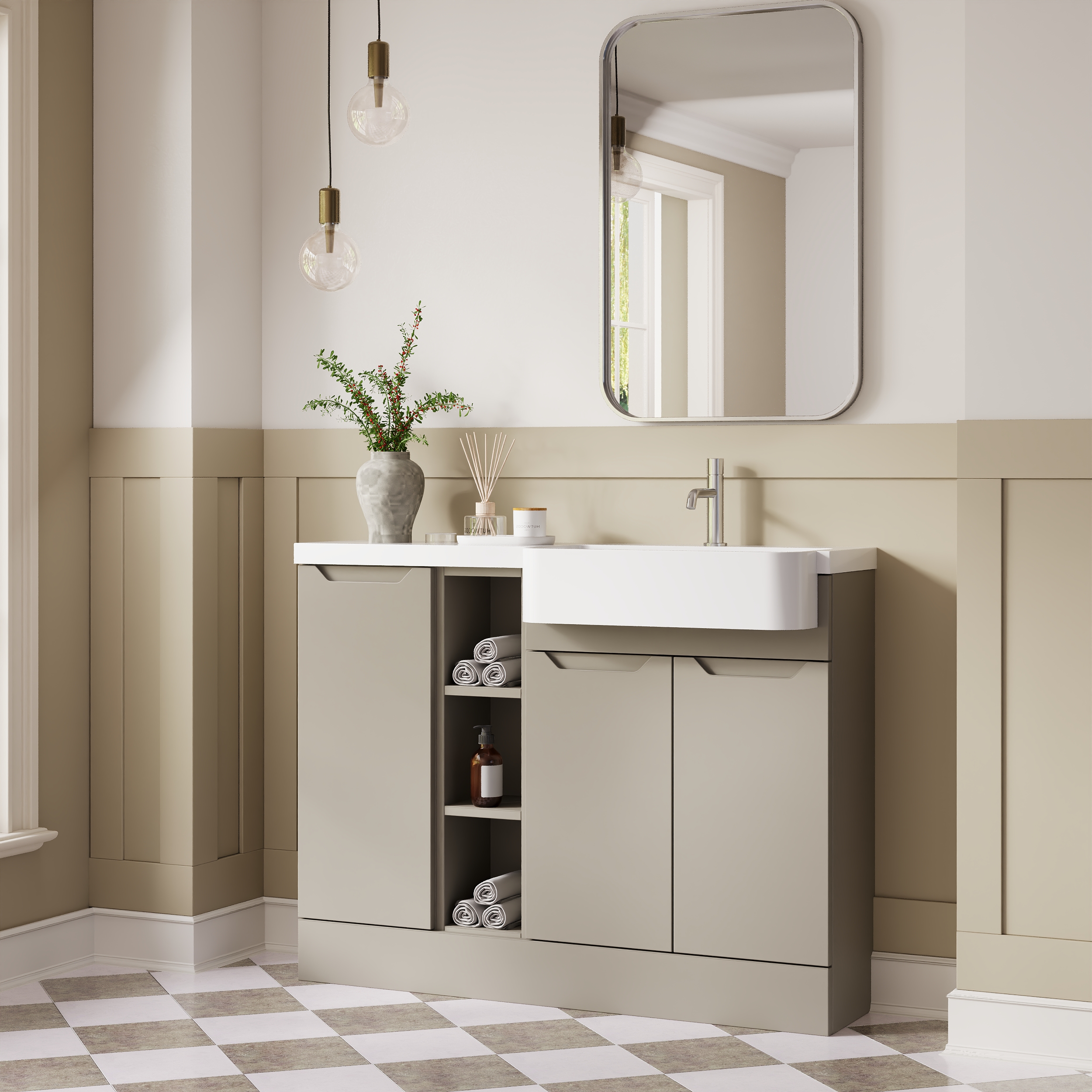 Nuie Lux Loave 1100mm Compact Combination Unit & Basin - Right Hand - Pebble Grey