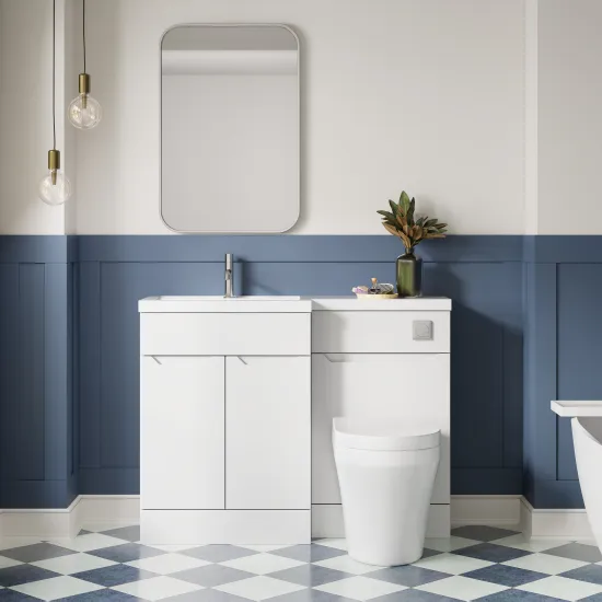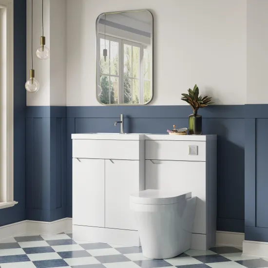 Nuie Lux Loave 1100mm Full Depth Combination Unit & L-Shaped Basin - Left Hand - Matt White
