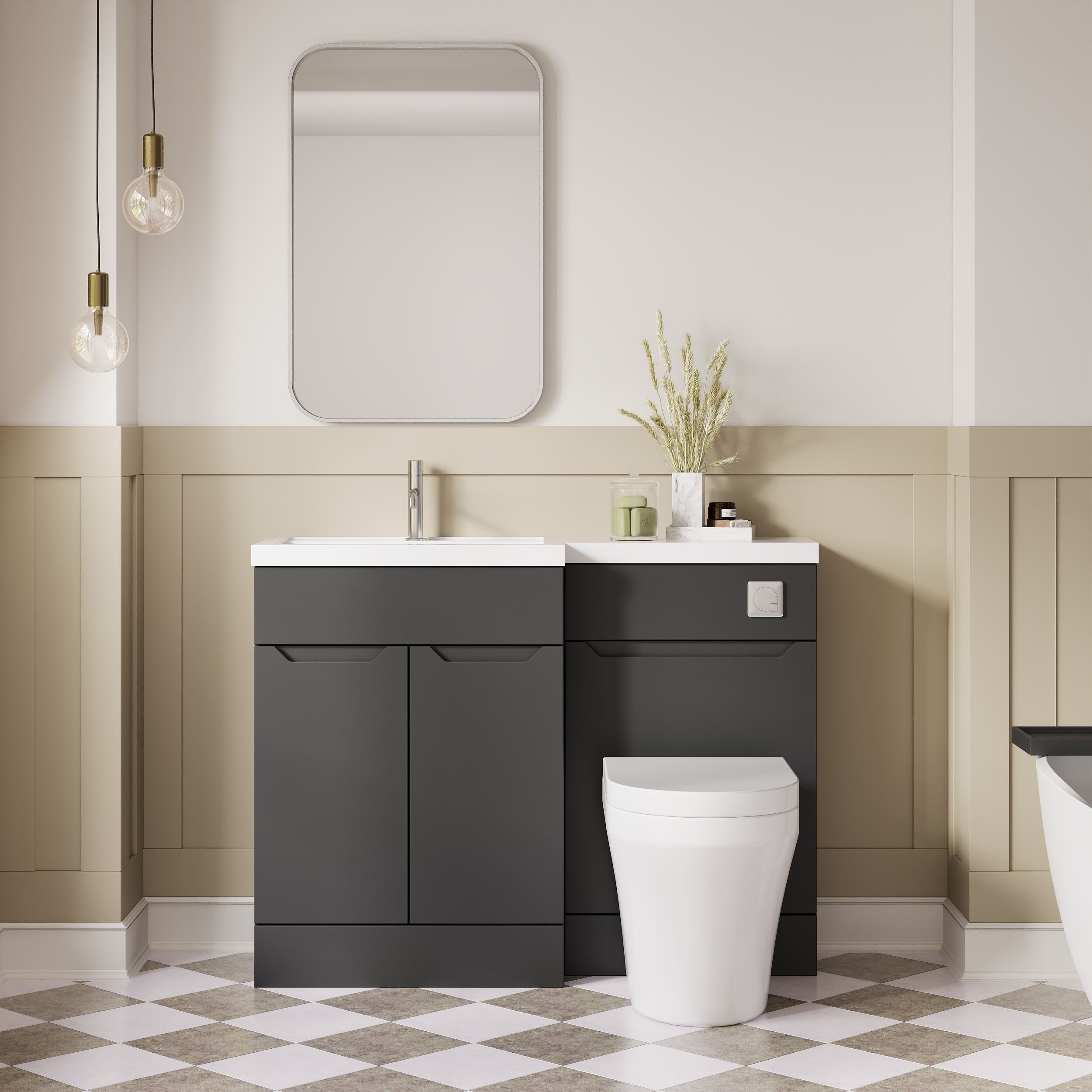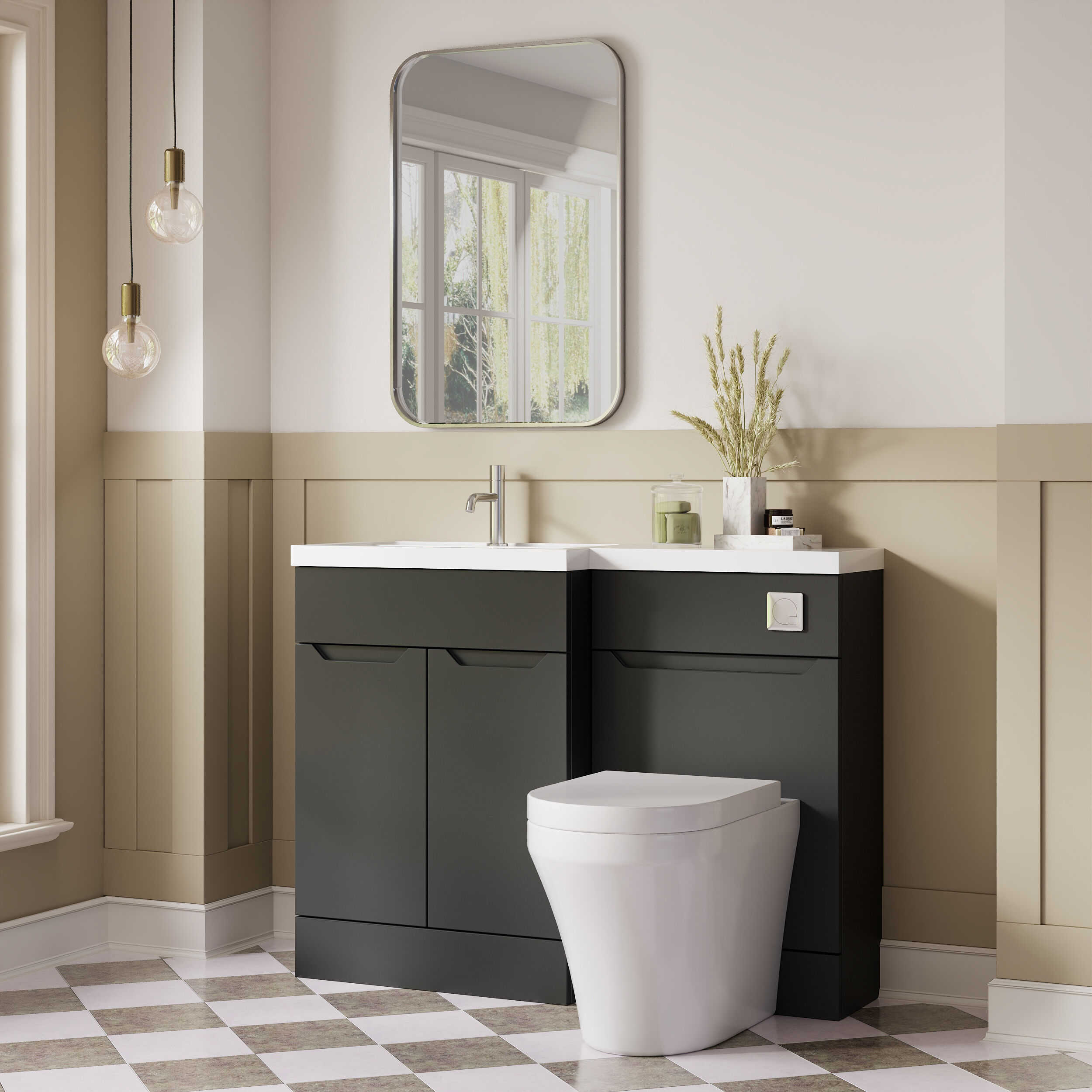 Nuie Lux Loave 1100mm Soft Black Combination Unit with Left Hand L-Shaped Basin, Handleless, Soft Close