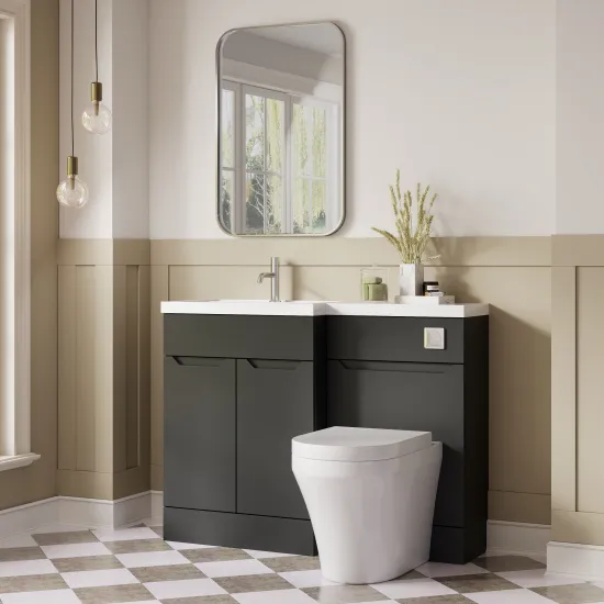 Nuie Lux Loave 1100mm Full Depth Combination Unit & L-Shaped Basin - Left Hand - Soft Black