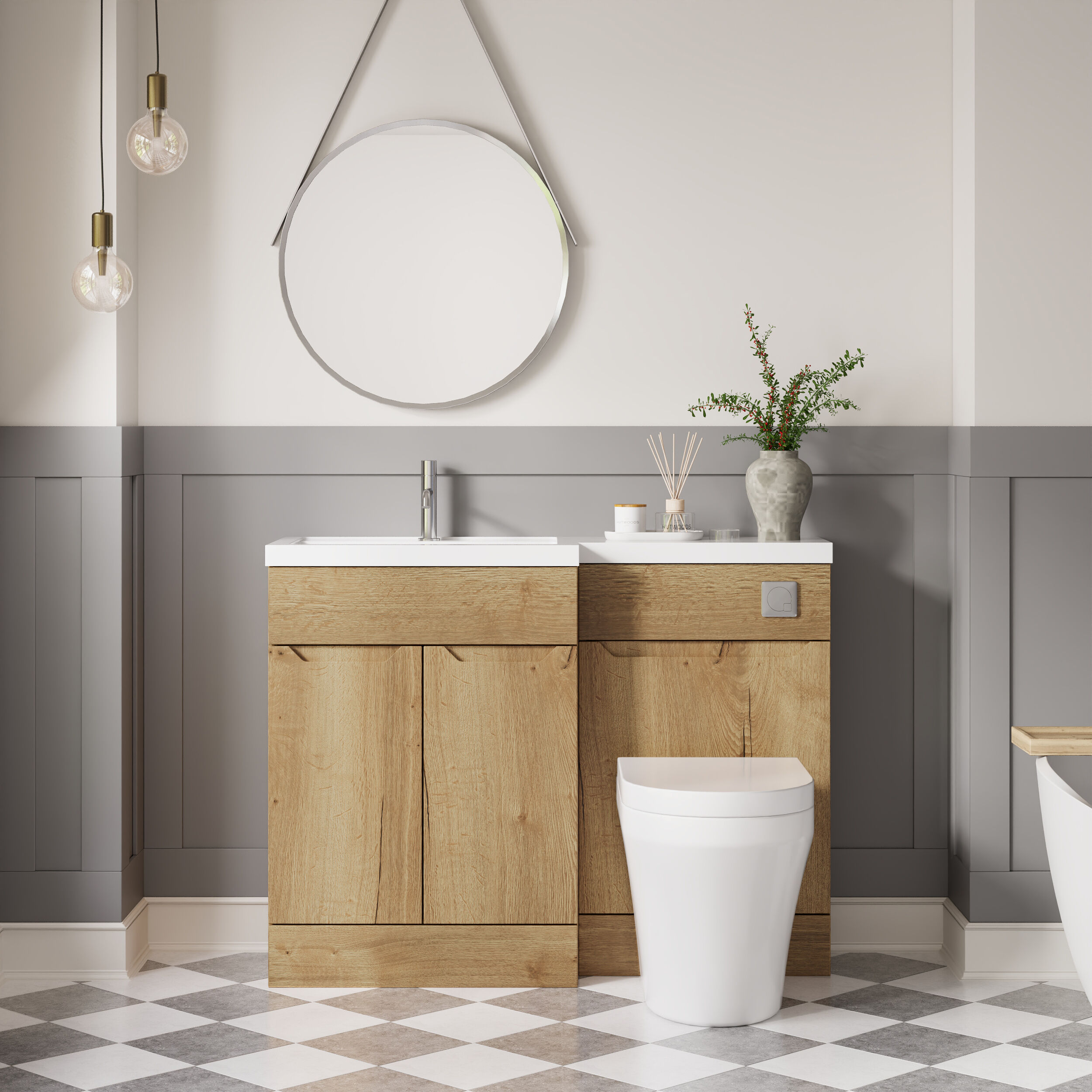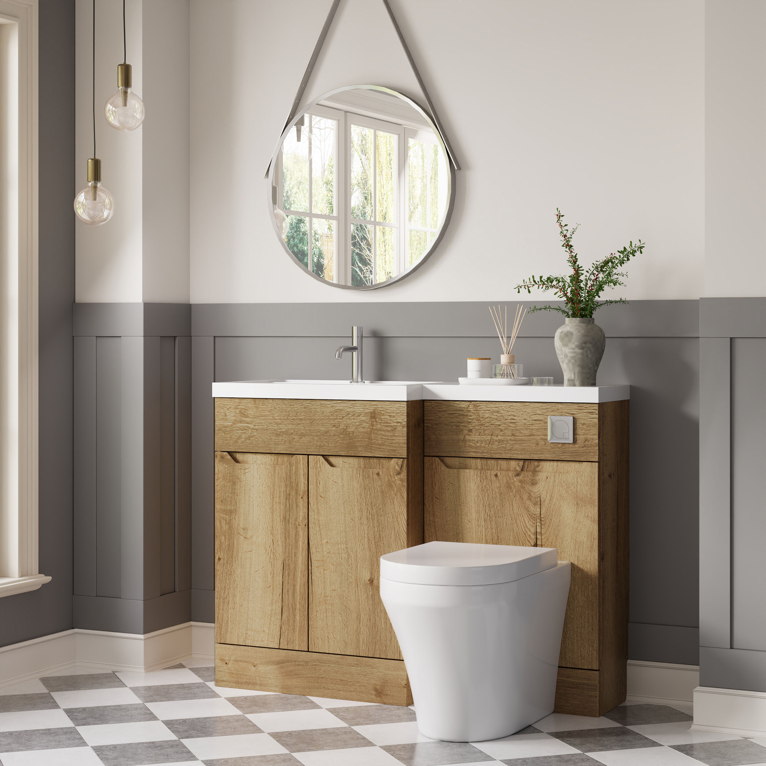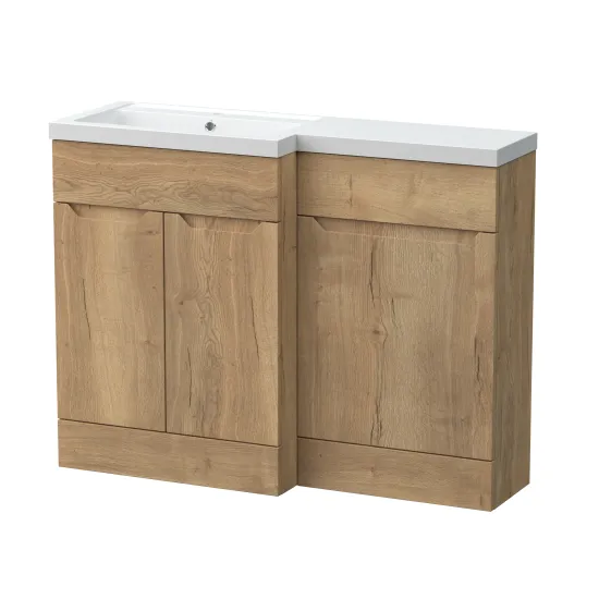 Nuie Lux Loave 1100mm Full Depth Combination Unit & L-Shaped Basin - Left Hand - Halifax Oak