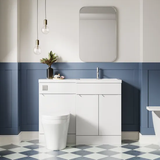 Nuie Lux Loave 1100mm Matt White Right Hand Combination Unit & L-Shaped Basin