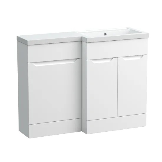 Nuie Lux Loave 1100mm Full Depth Combination Unit & L-Shaped Basin - Right Hand - Matt White