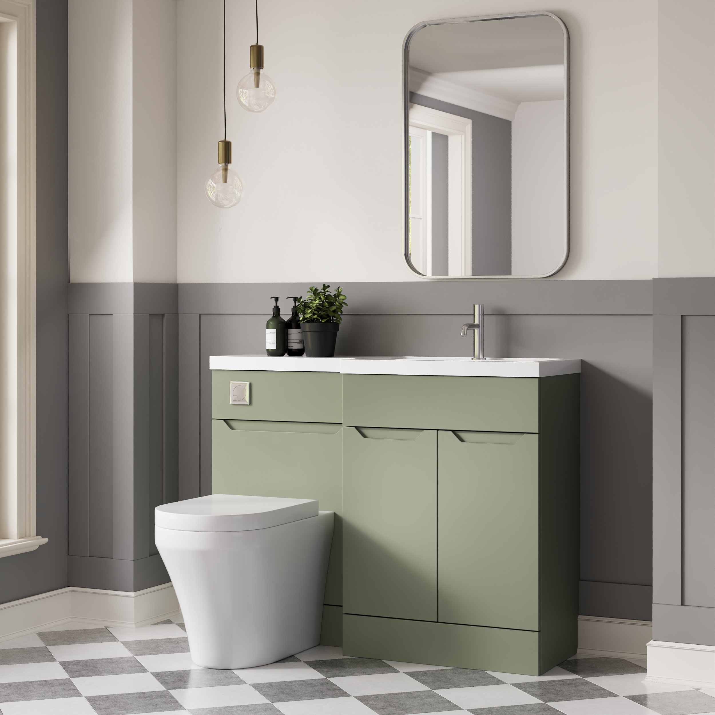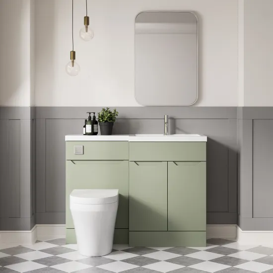 Nuie Lux Loave 1100mm Full Depth Combination Unit & L-Shaped Basin - Right Hand - Reed Green