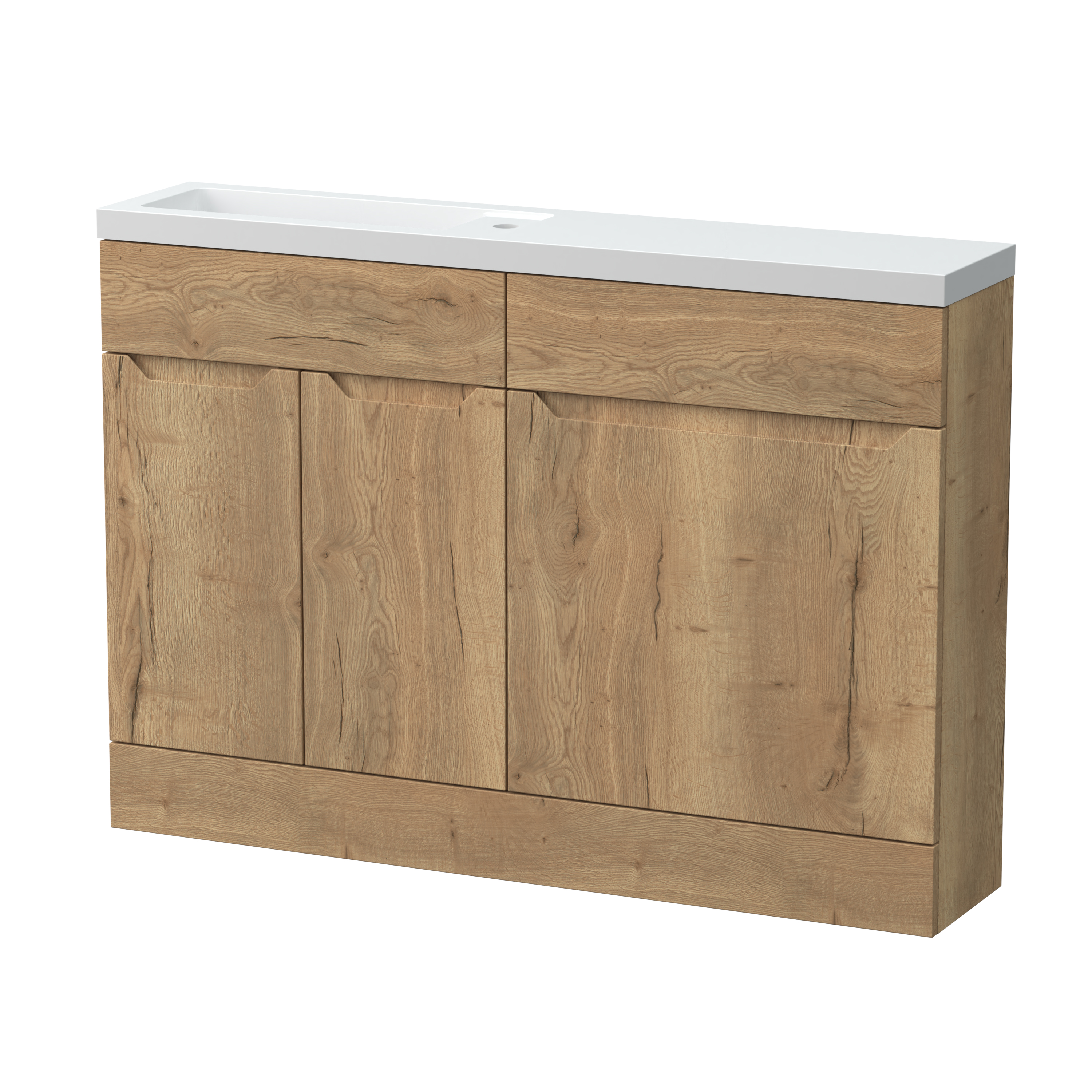 Nuie Lux Loave 1200mm Handleless Autumn Oak Combination Unit & Basin with Soft Close Doors, Rigid