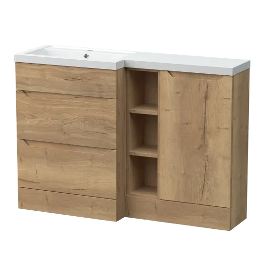Nuie Lux Loave 1200mm Full Depth Combination Unit & L-Shaped Basin - Left Hand - Halifax Oak