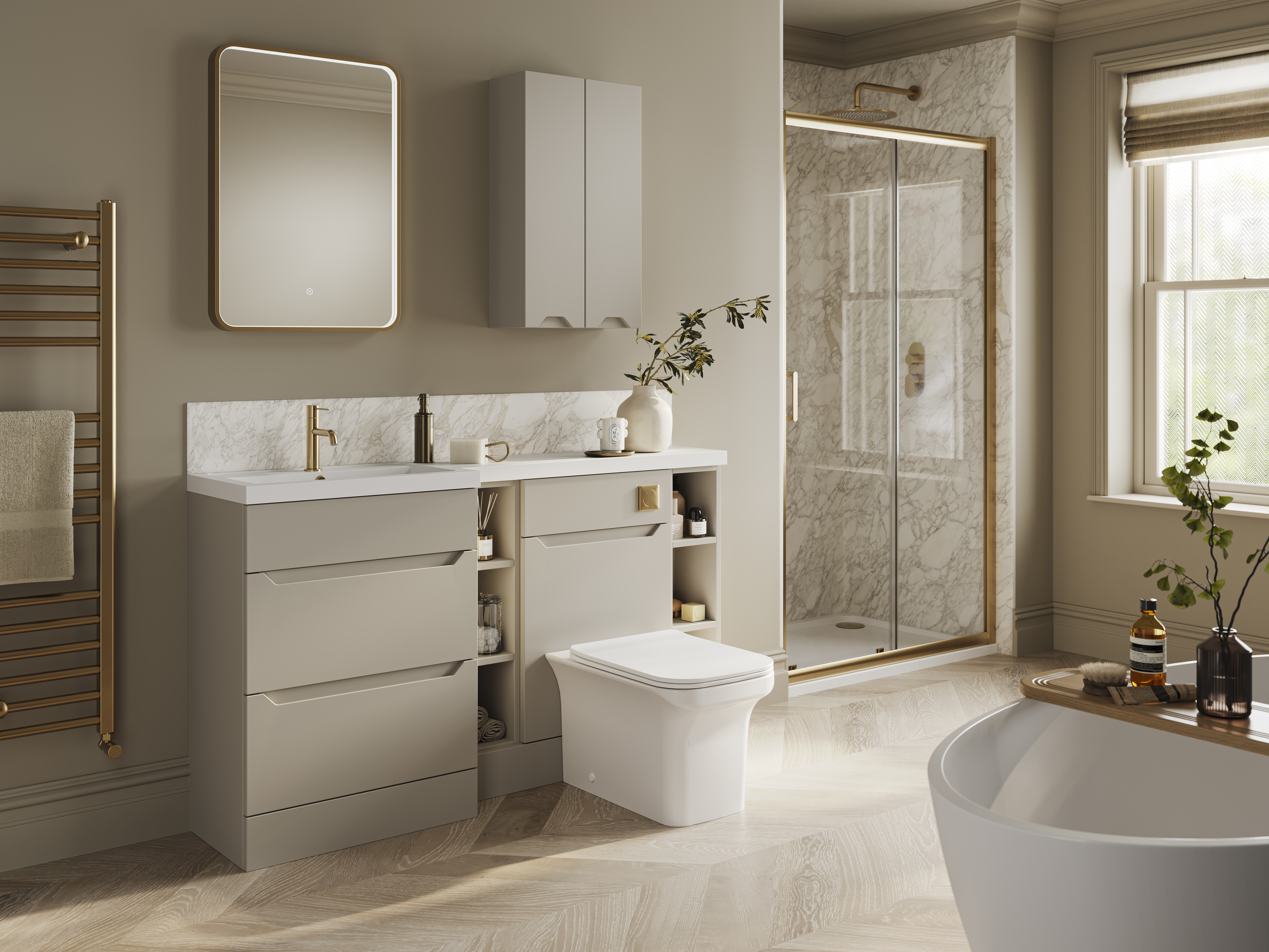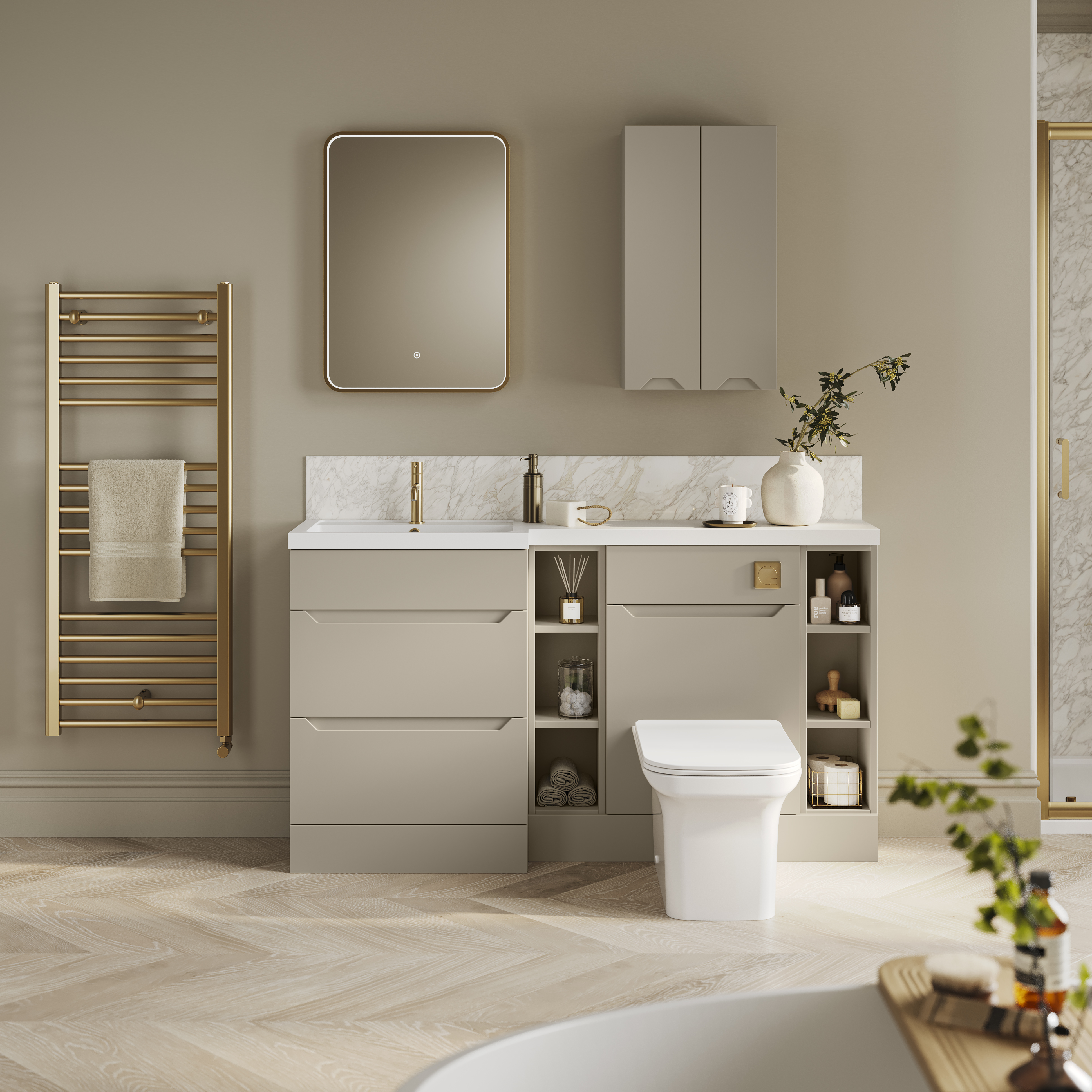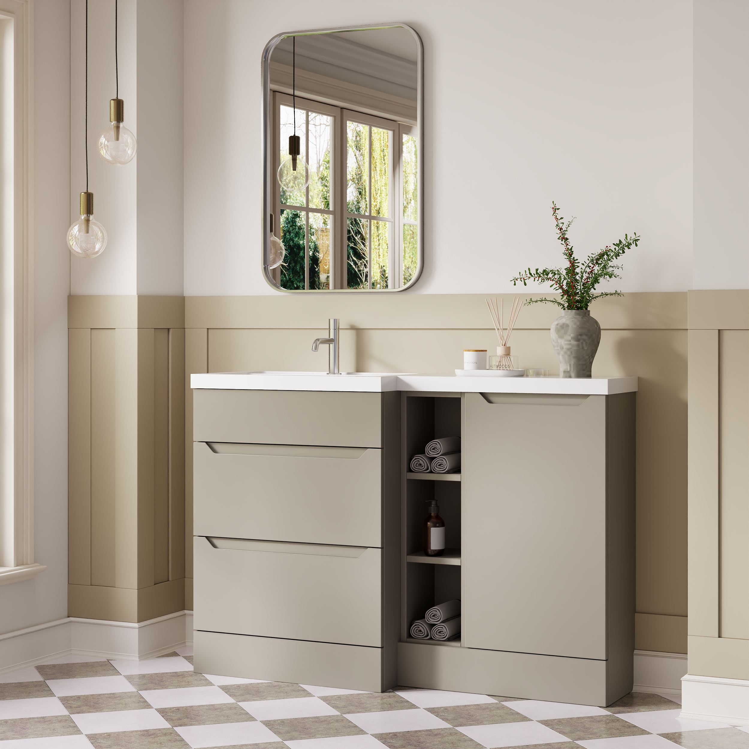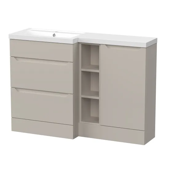 Nuie Lux Loave 1200mm Full Depth Combination Unit & L-Shaped Basin - Left Hand - Pebble Grey