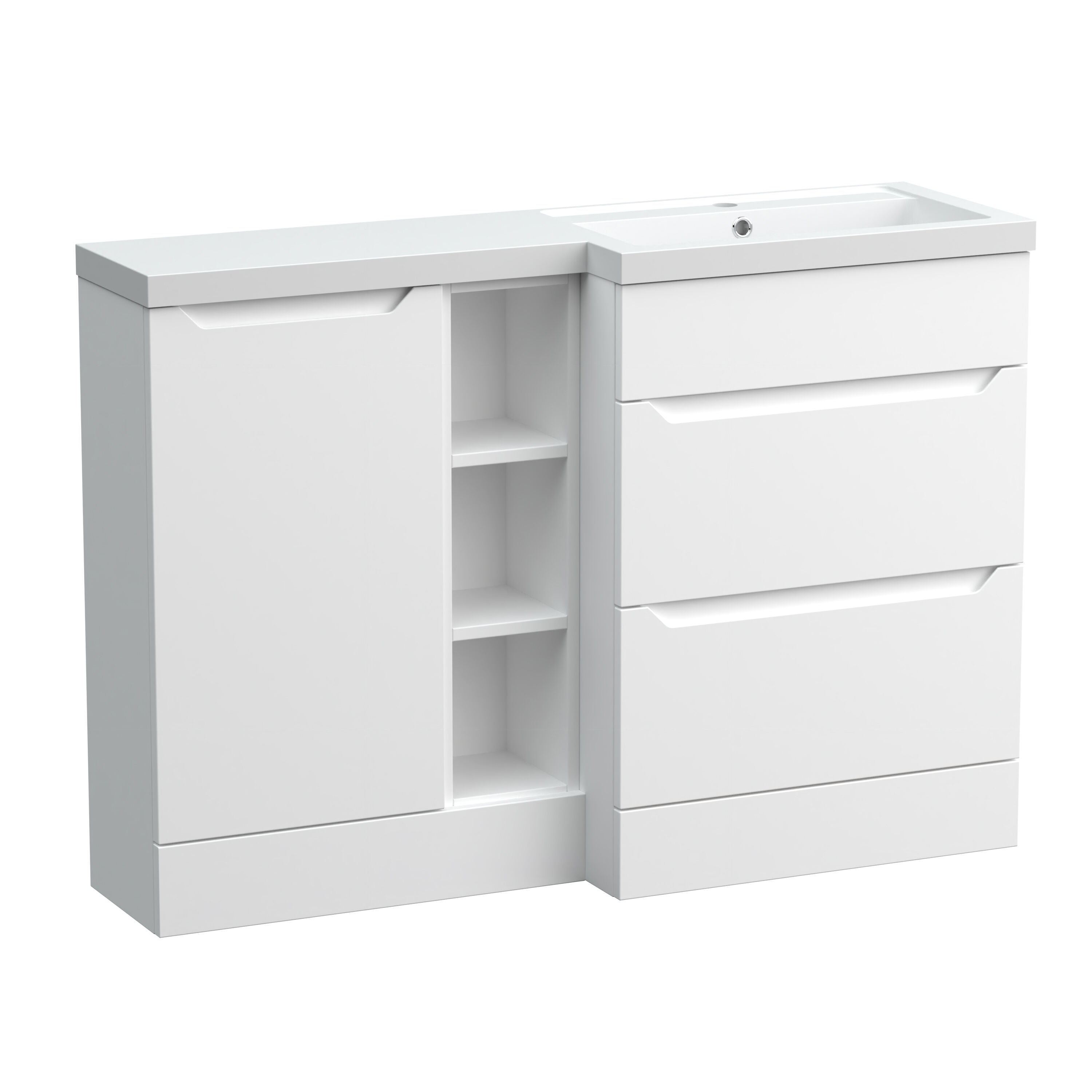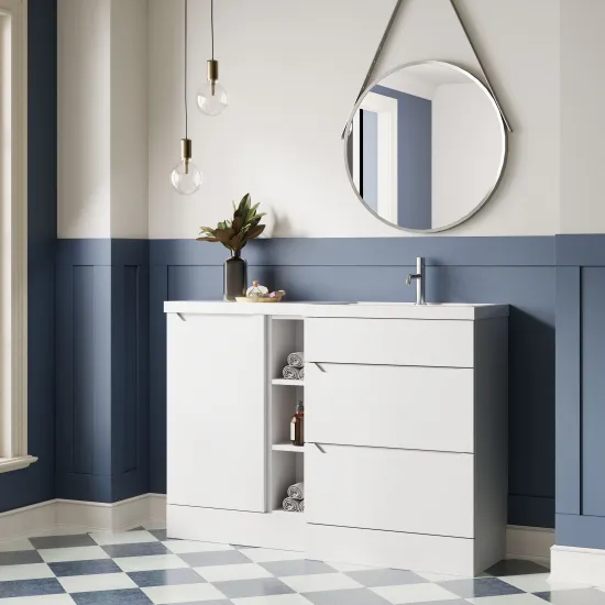 Nuie Lux Loave 1200mm Full Depth Combination Unit & L-Shaped Basin - Right Hand - Matt White
