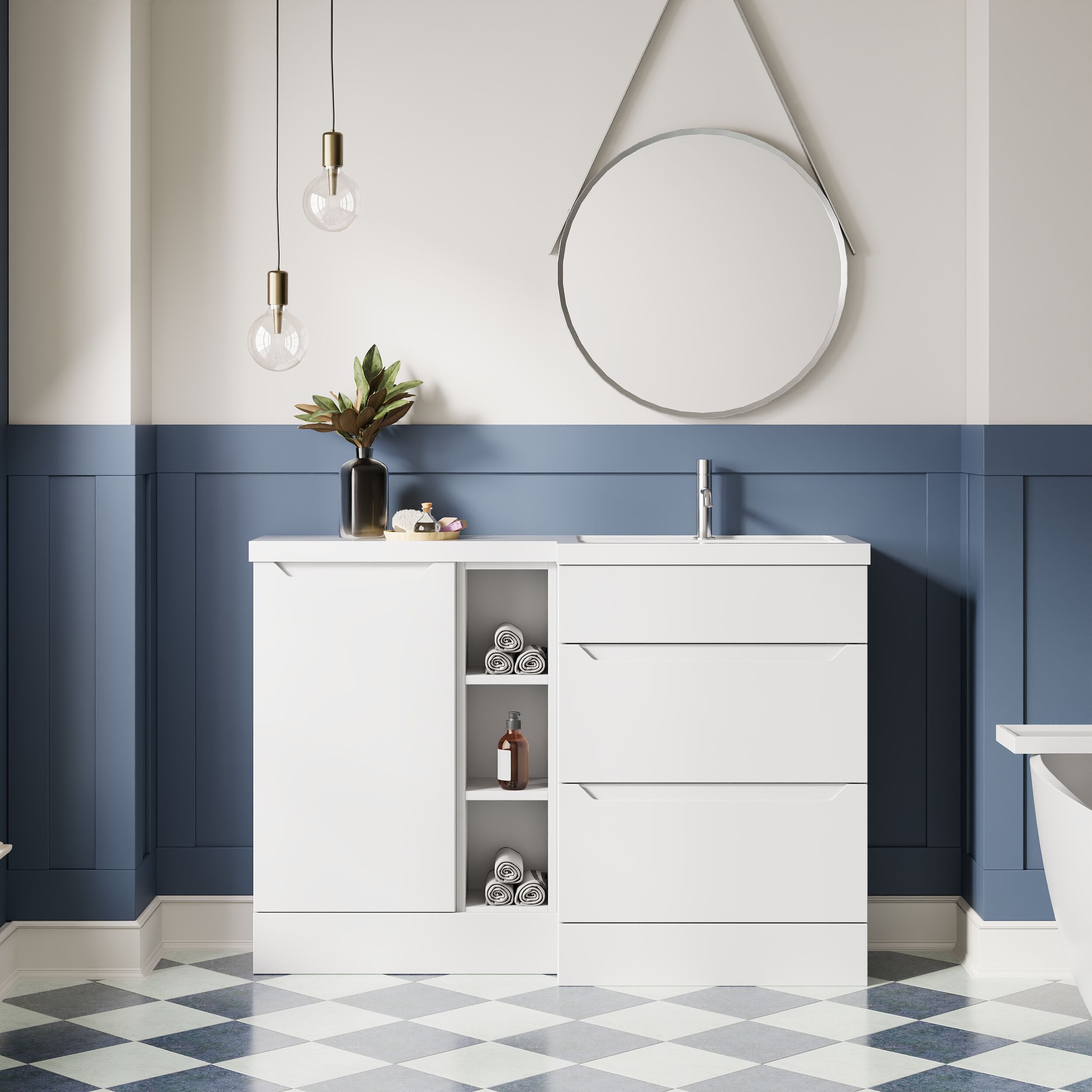 Loave 1200mm Full Depth Combination Unit & L-Shaped Basin - Right Hand