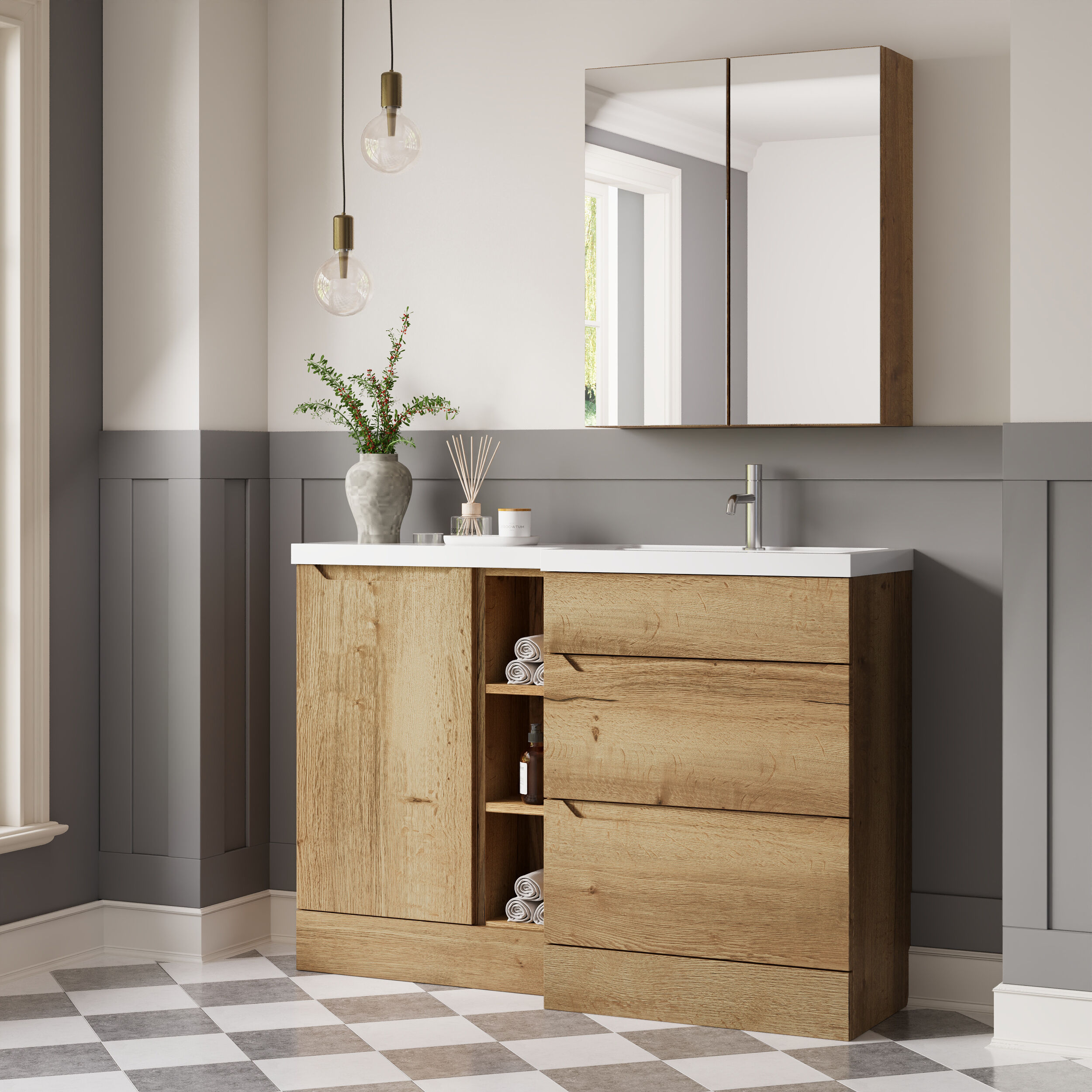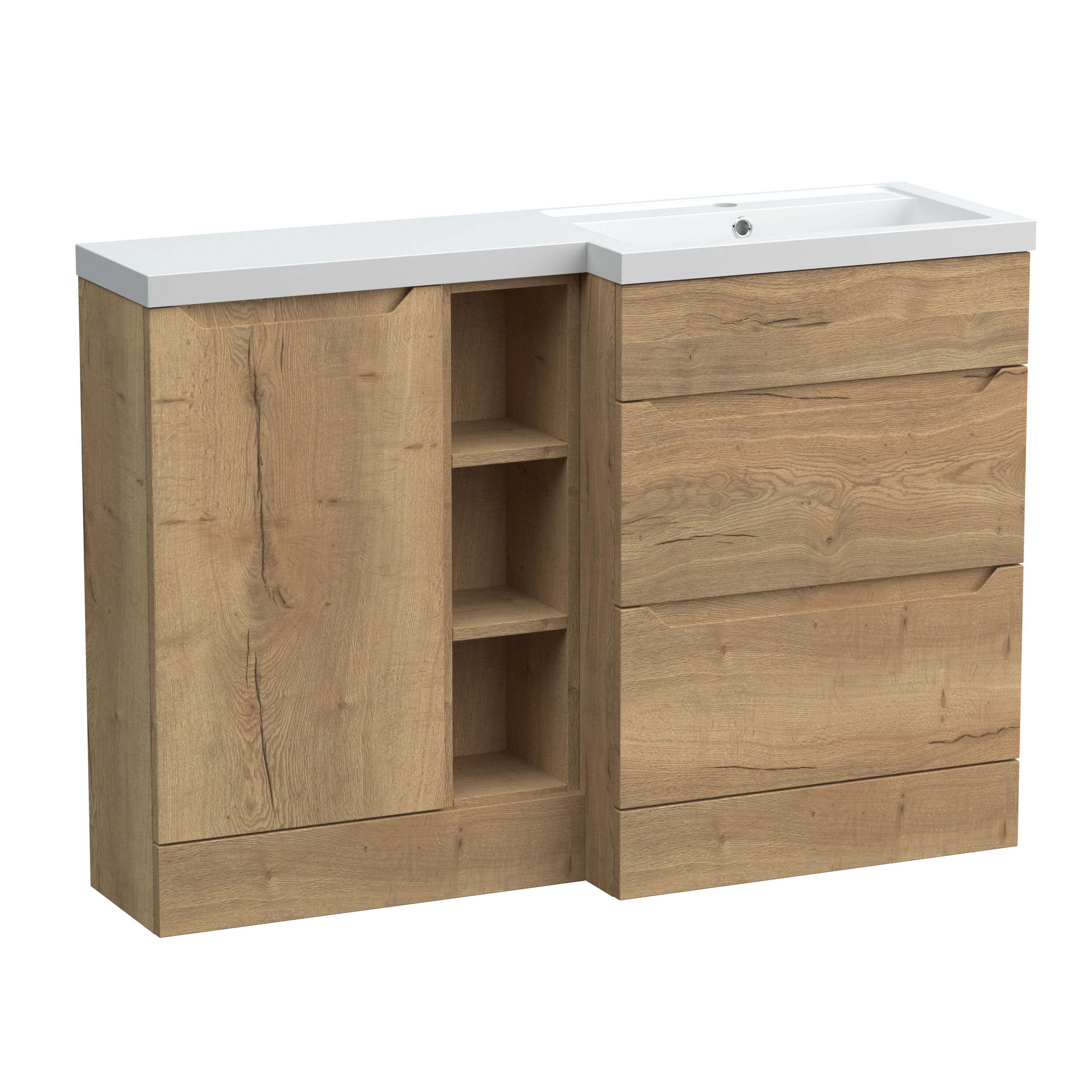 Nuie Lux Loave 1200mm Full Depth Combination Unit & L-Shaped Basin - Right Hand - Halifax Oak