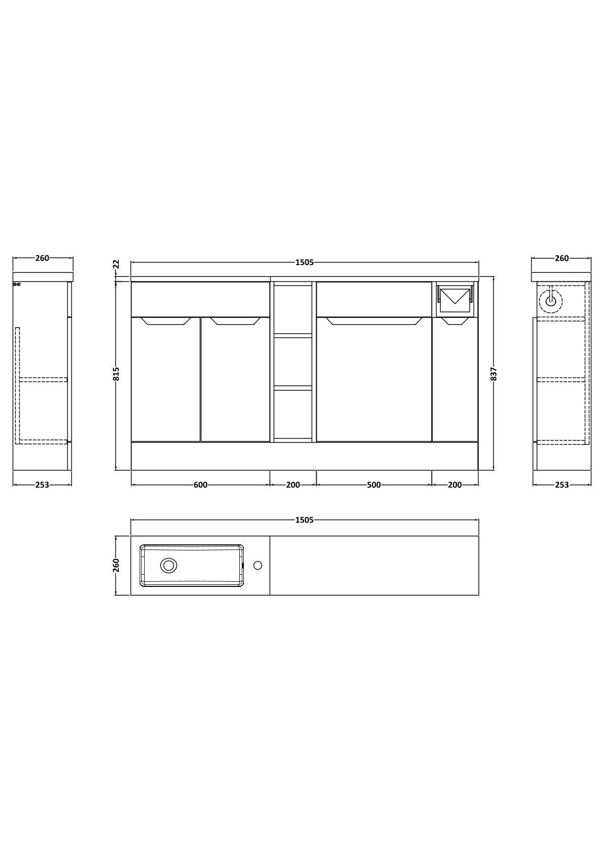 Nuie Lux Loave 1500mm Compact Combination Unit & Basin - Matt White