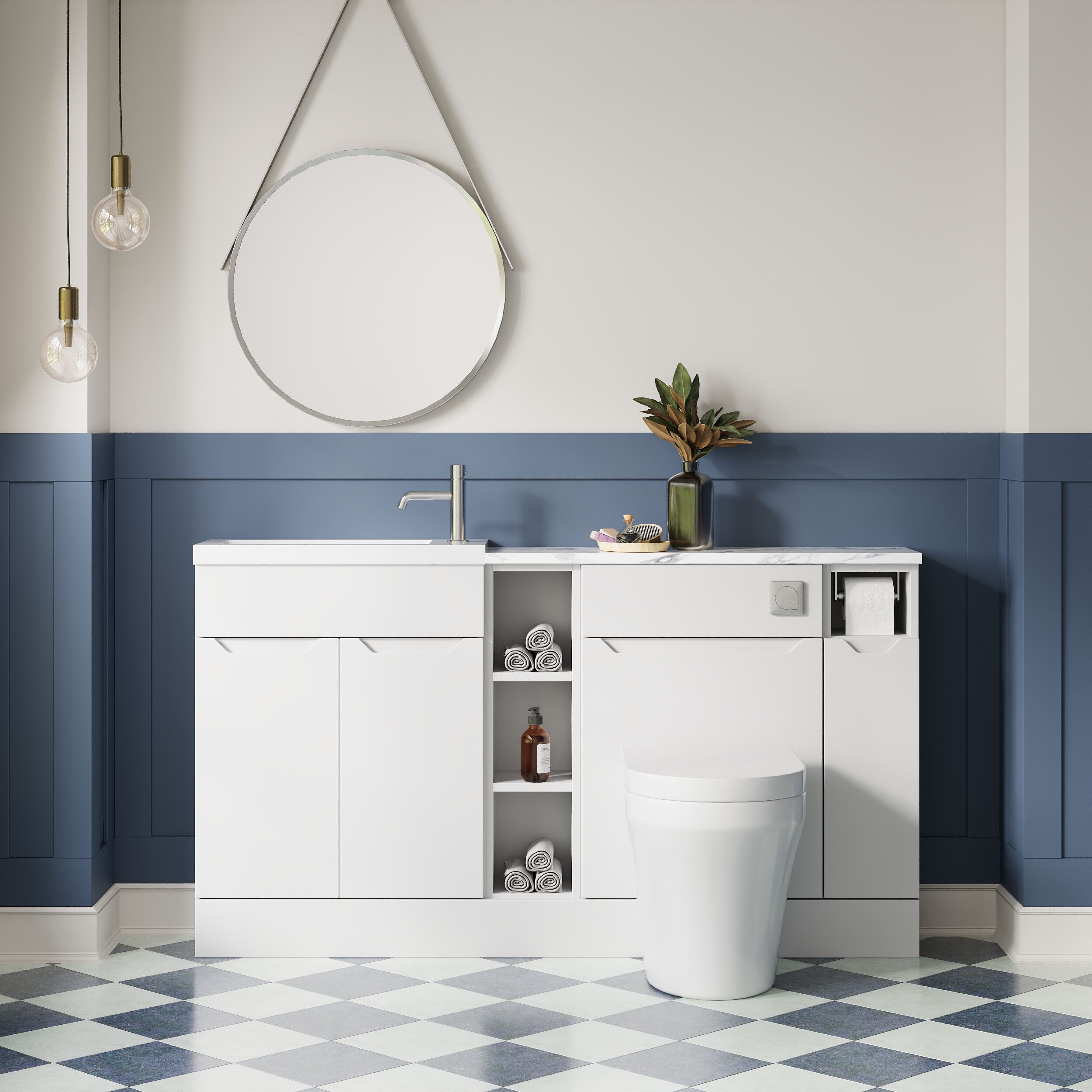 Nuie Lux Loave 1500mm Matt White Handleless Soft Close Combination Unit & Basin