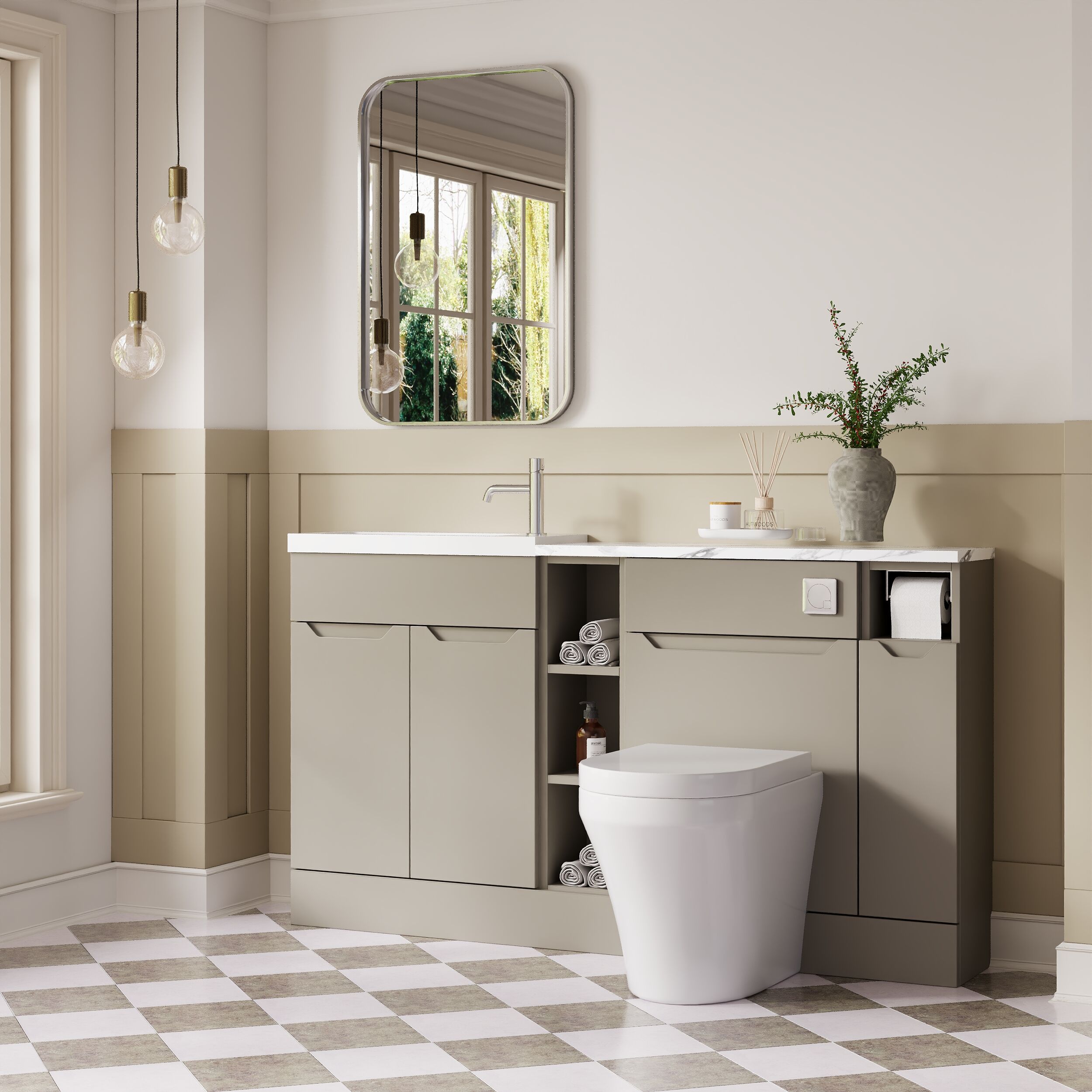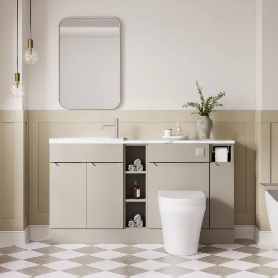 Nuie Lux Loave 1500mm Pebble Grey Handleless Combination Unit & Basin