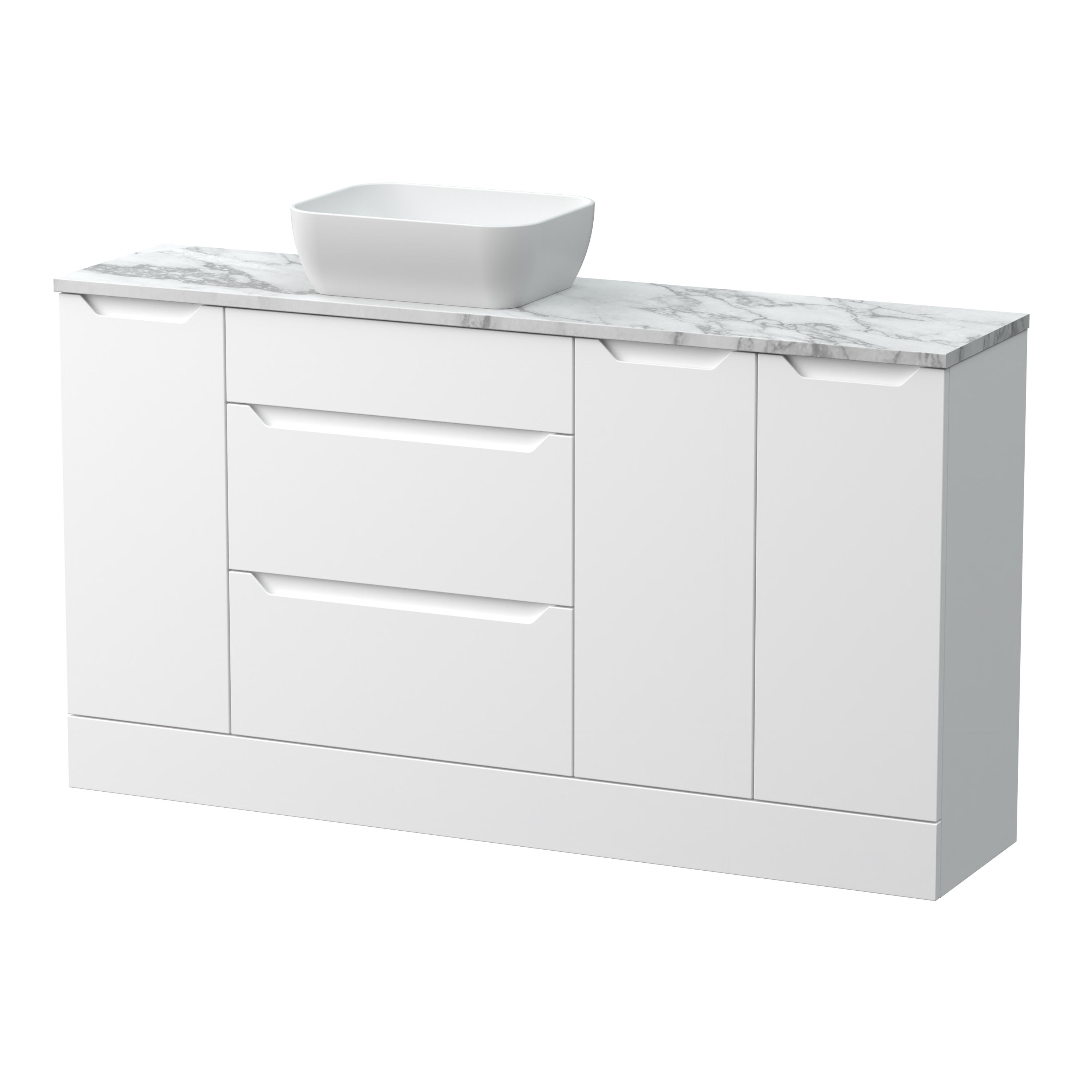 Nuie Lux Loave 1500mm Matt White Handleless Floor Standing Combination Unit With Basin