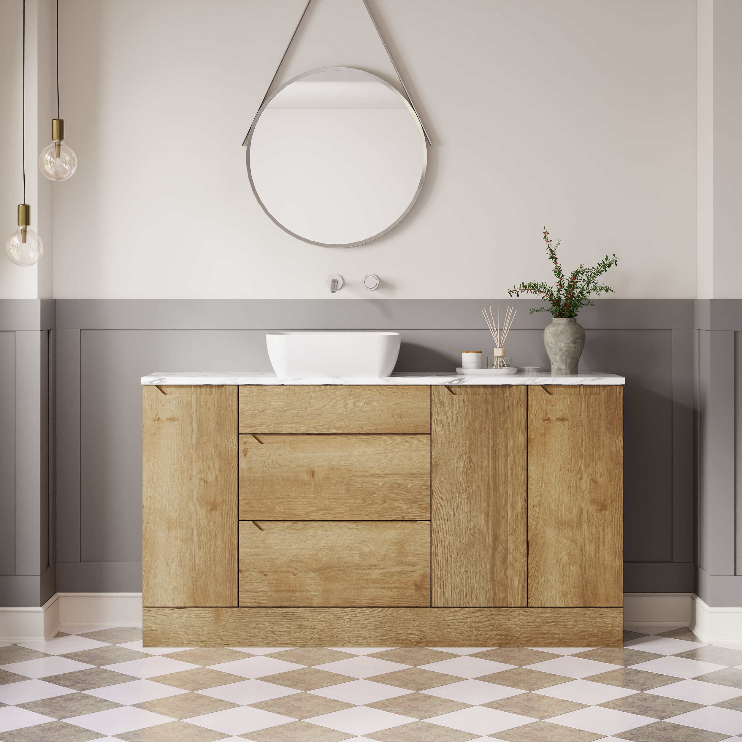 Nuie Lux Loave 1500mm Autumn Oak Combination Unit & Basin With Soft Close Doors & Drawers
