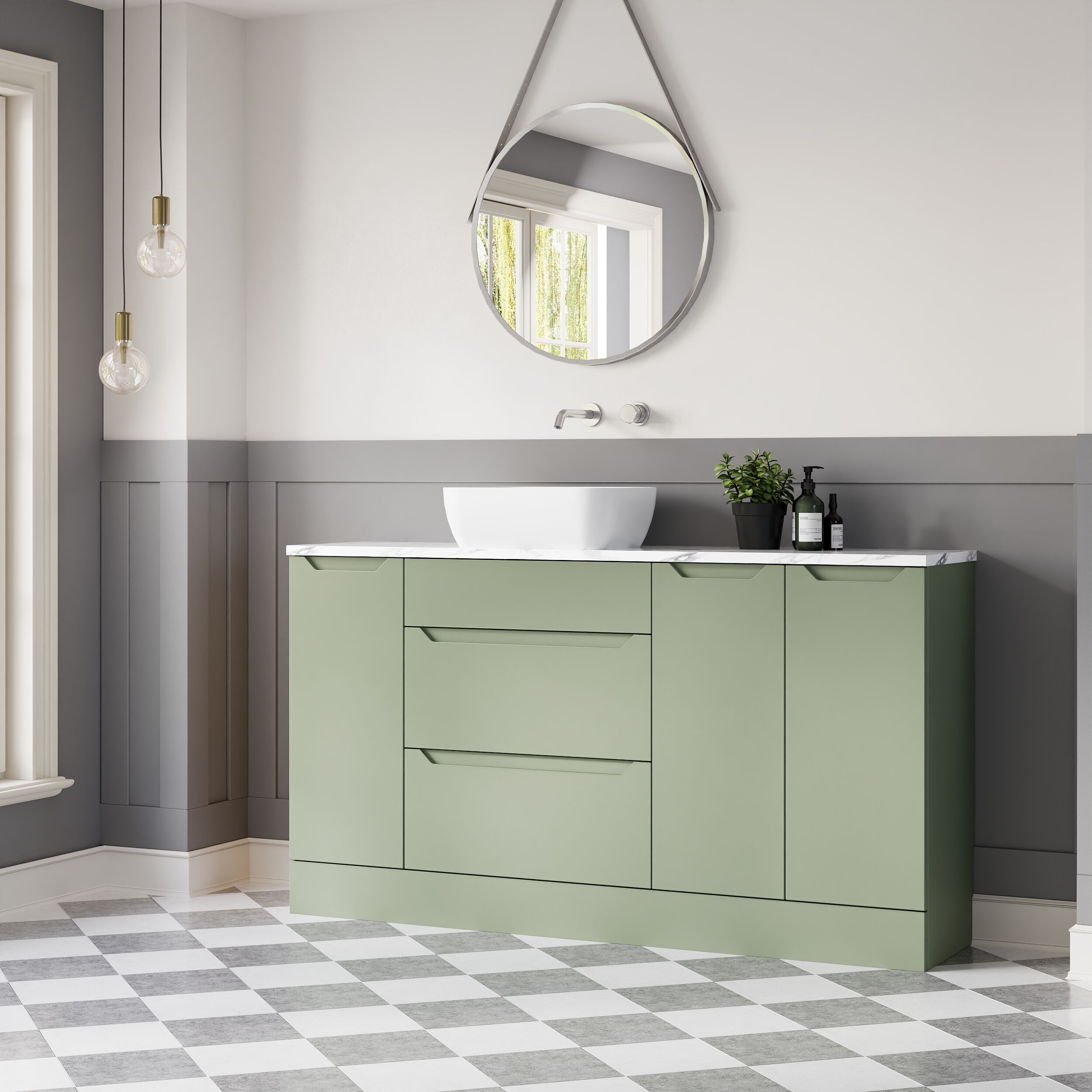 Nuie Lux Loave 1500mm Full Depth Combination Unit & Basin - Reed Green