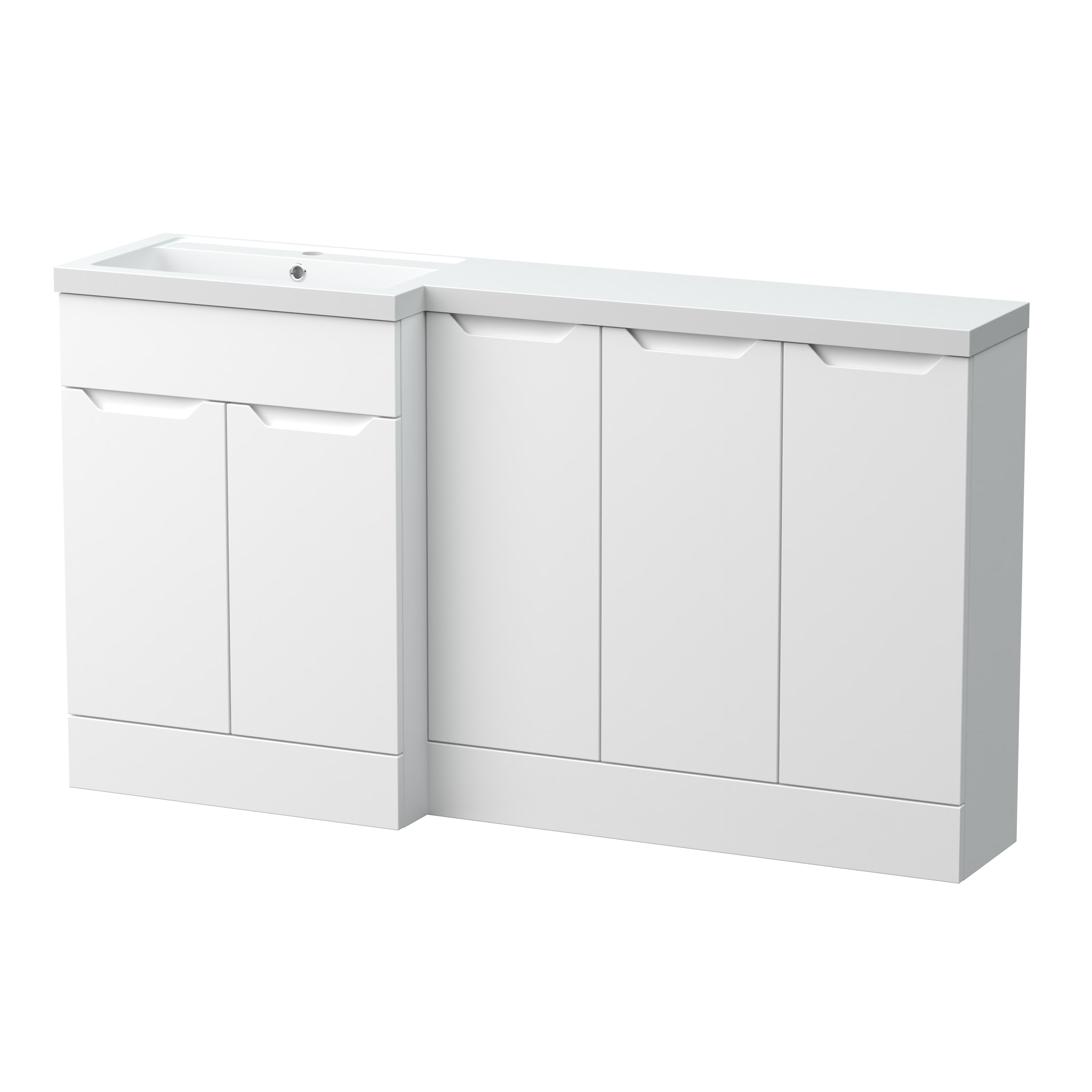 Nuie Lux Loave 1500mm Full Depth Combination Unit & L-Shaped Basin - Left Hand - Matt White