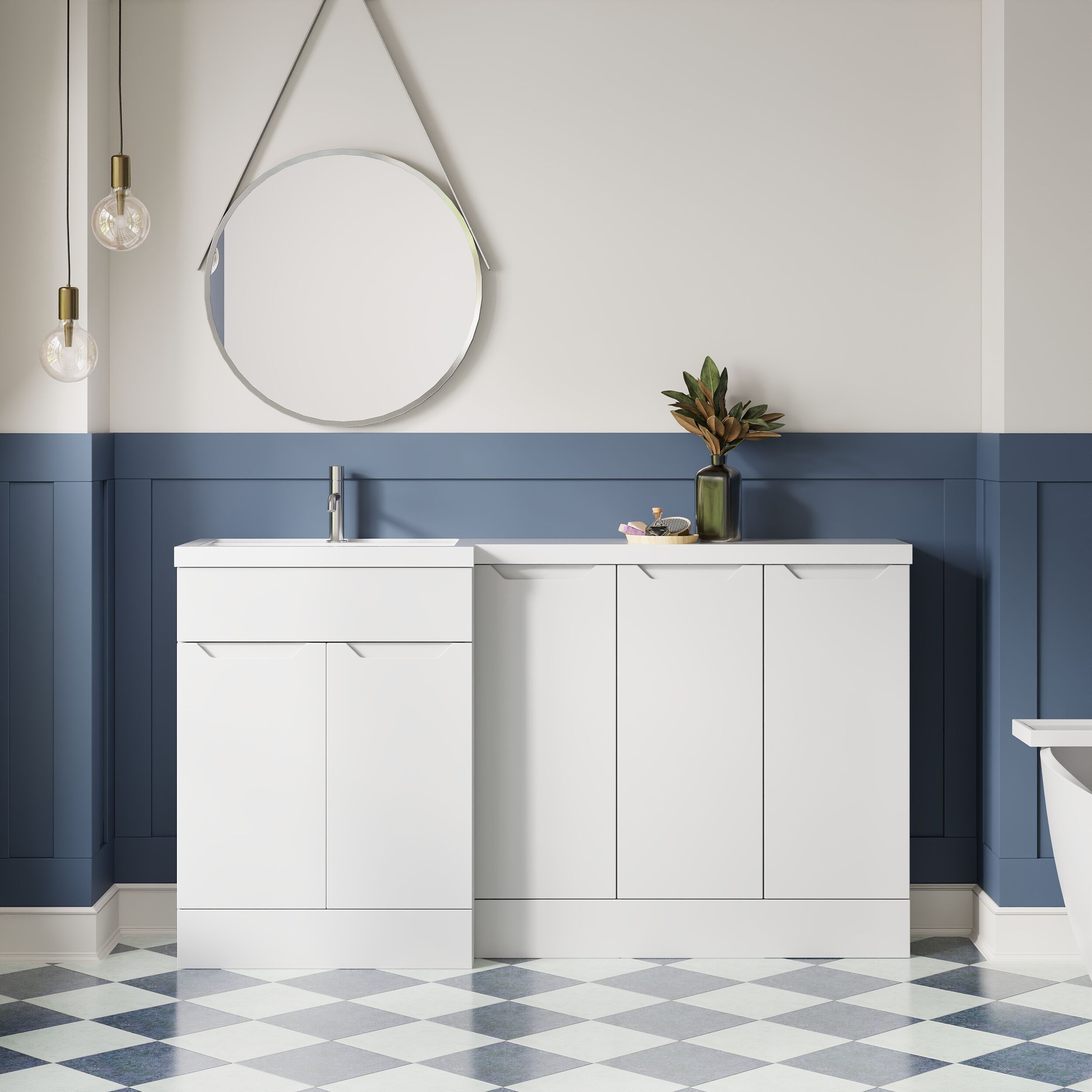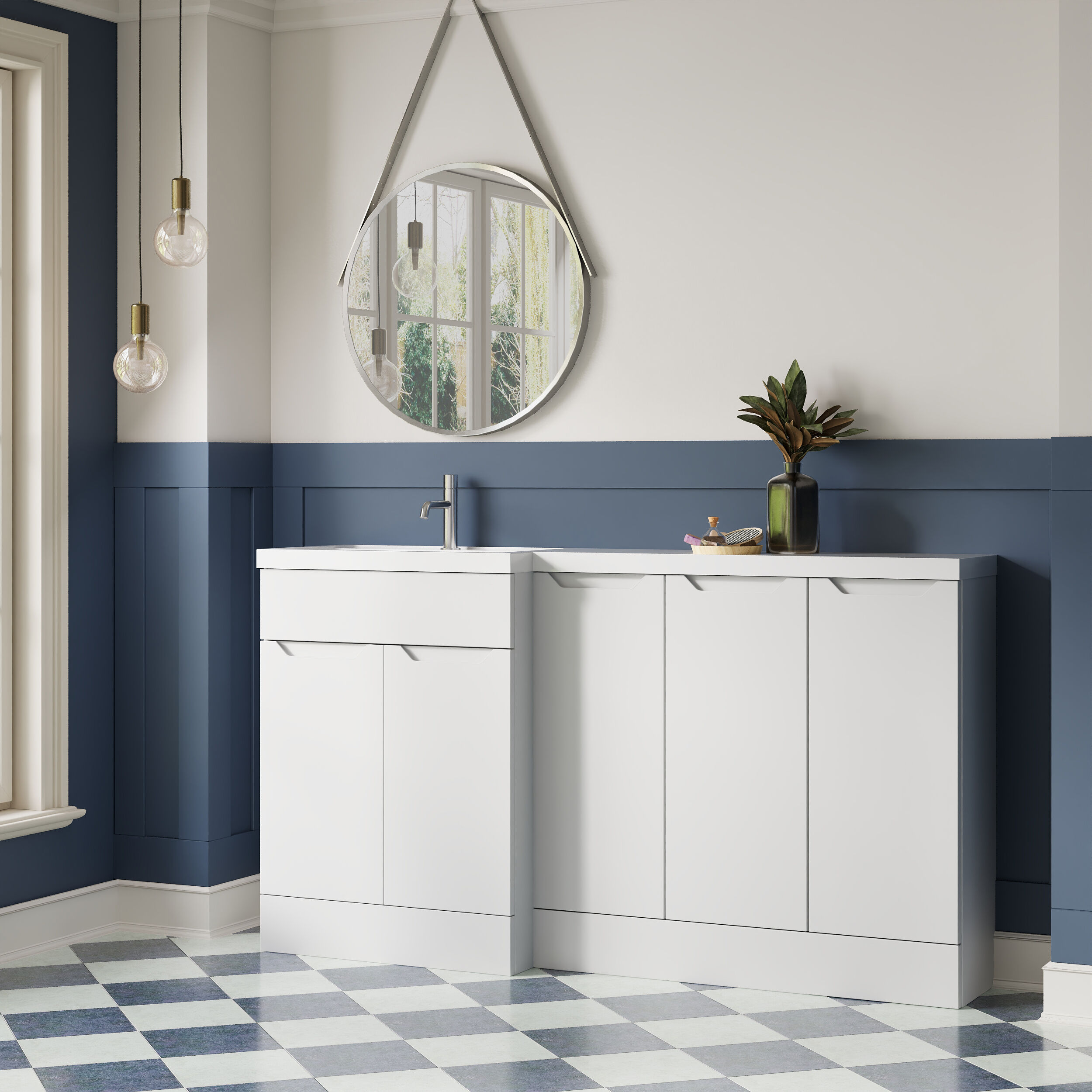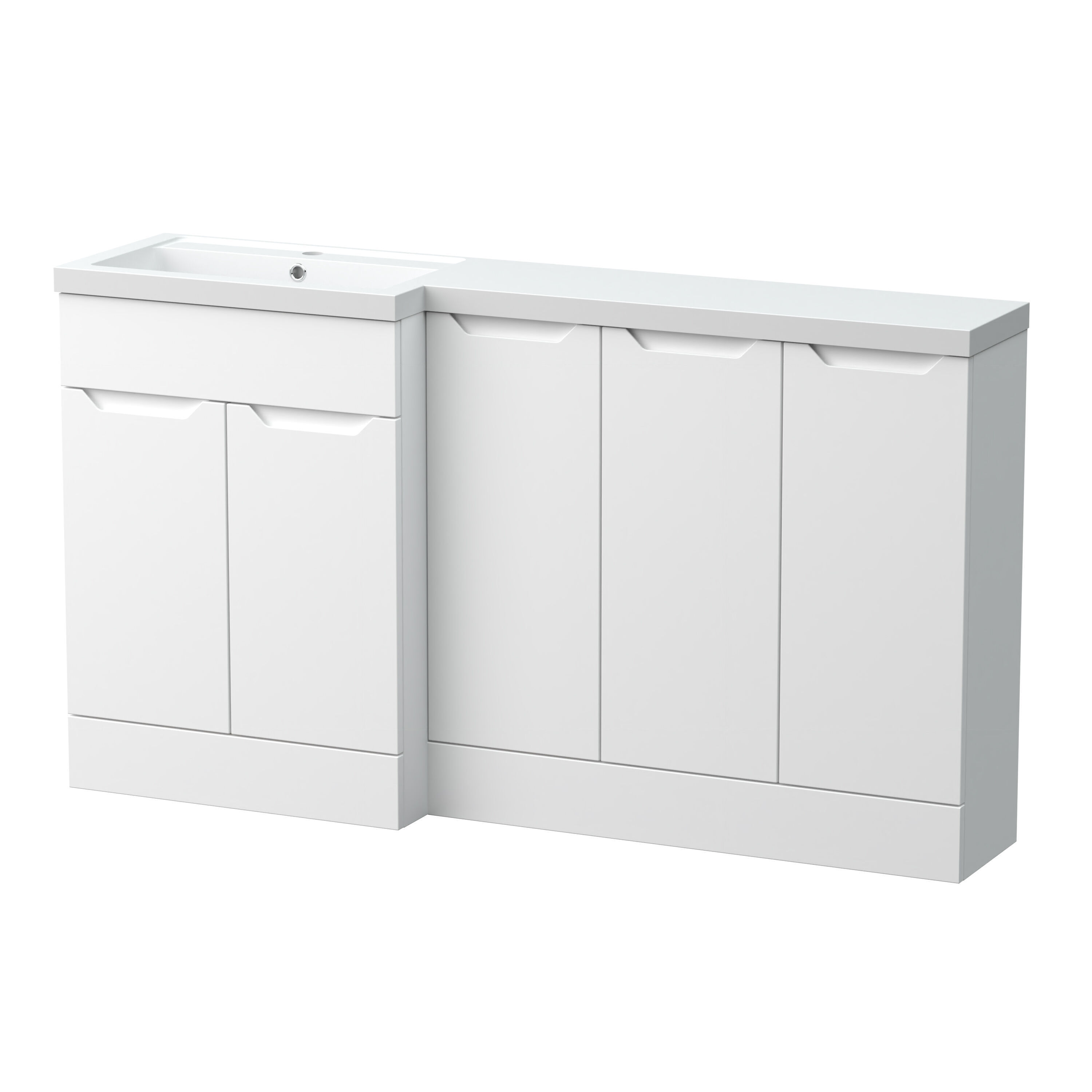 Nuie Lux Loave 1500mm Matt White Handleless L-Shaped Basin Left Hand Combination Unit