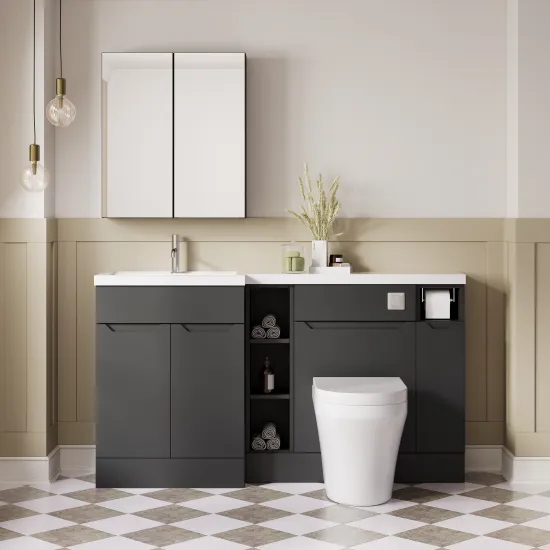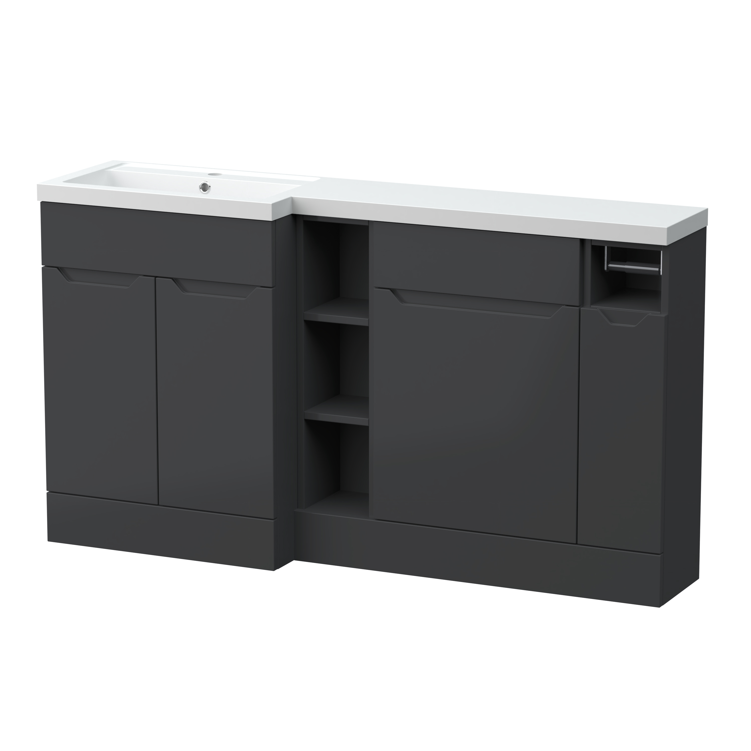 Nuie Lux Loave 1500mm Full Depth Combination Unit & L-Shaped Basin - Left Hand - Soft Black