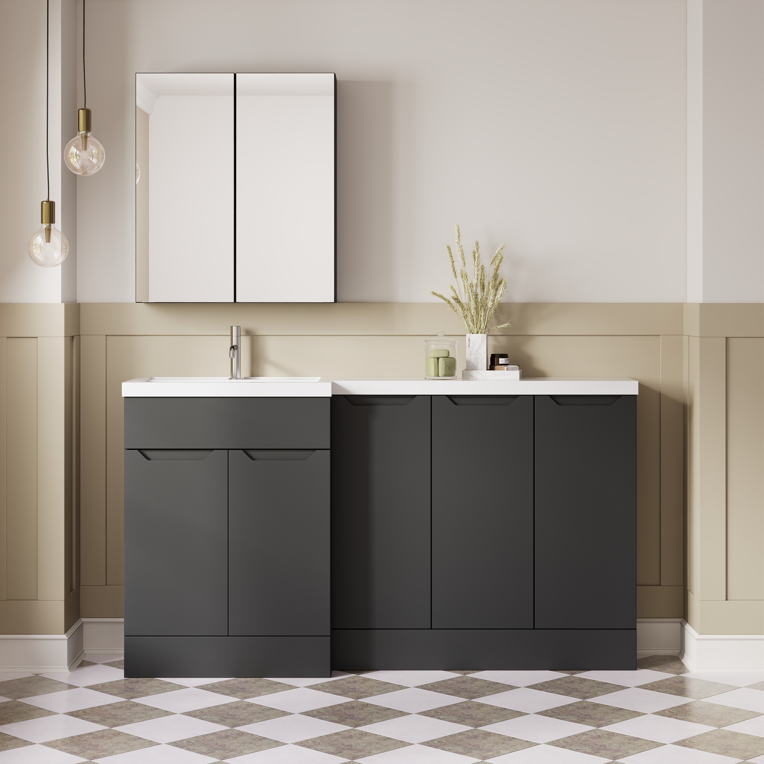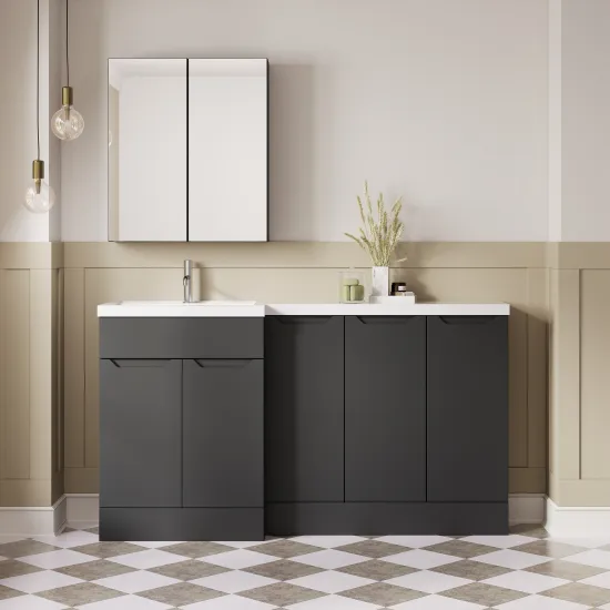 Nuie Lux Loave 1500mm Full Depth Combination Unit & L-Shaped Basin - Left Hand - Soft Black
