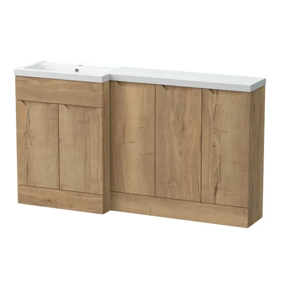 Nuie Lux Loave 1500mm Full Depth Combination Unit & L-Shaped Basin - Left Hand - Halifax Oak