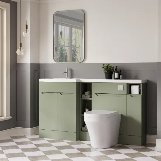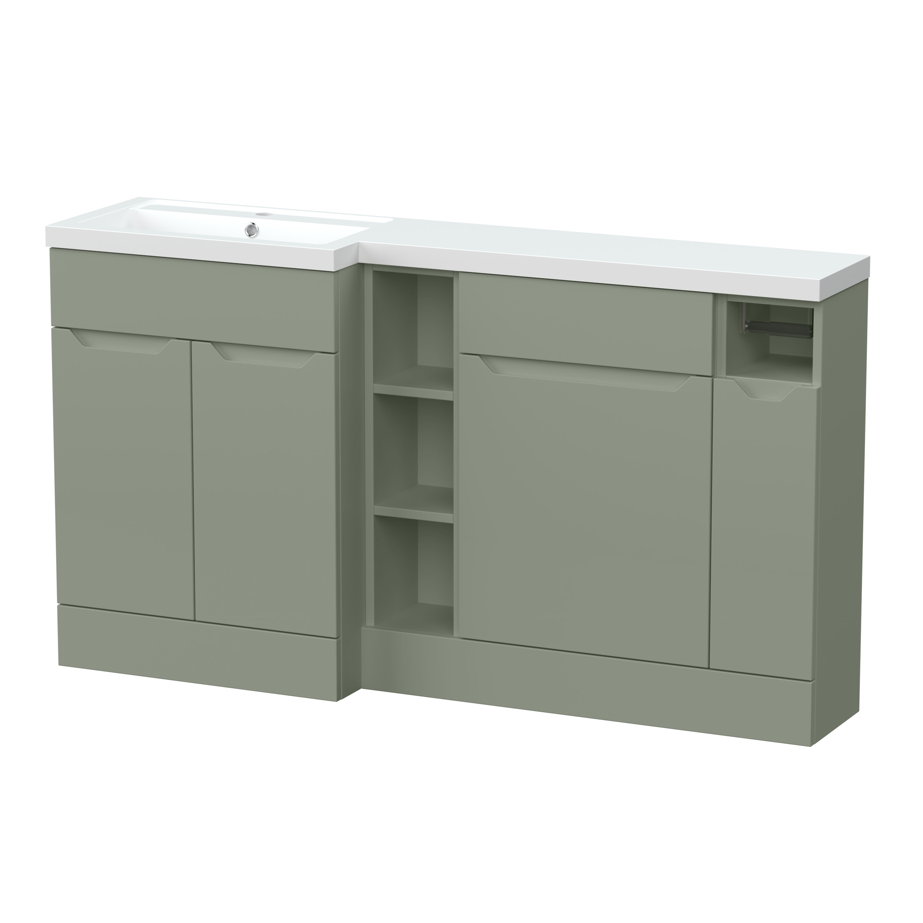 Nuie Lux Loave 1500mm Full Depth Combination Unit & L-Shaped Basin - Left Hand - Reed Green