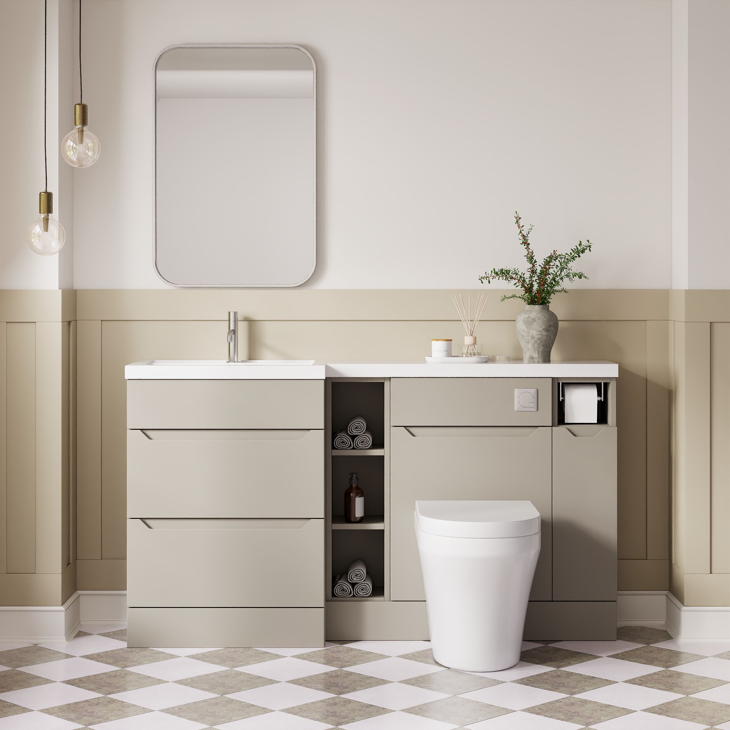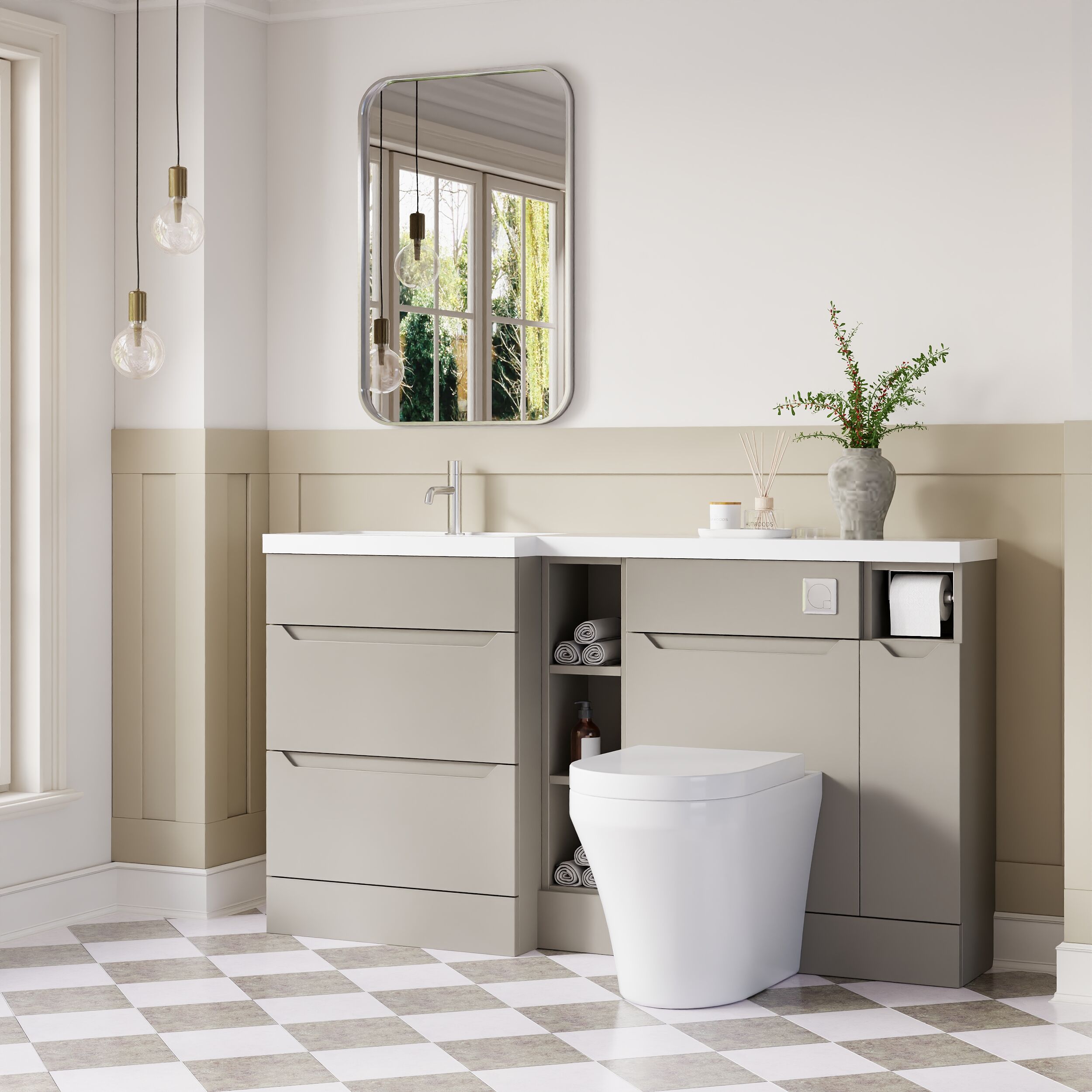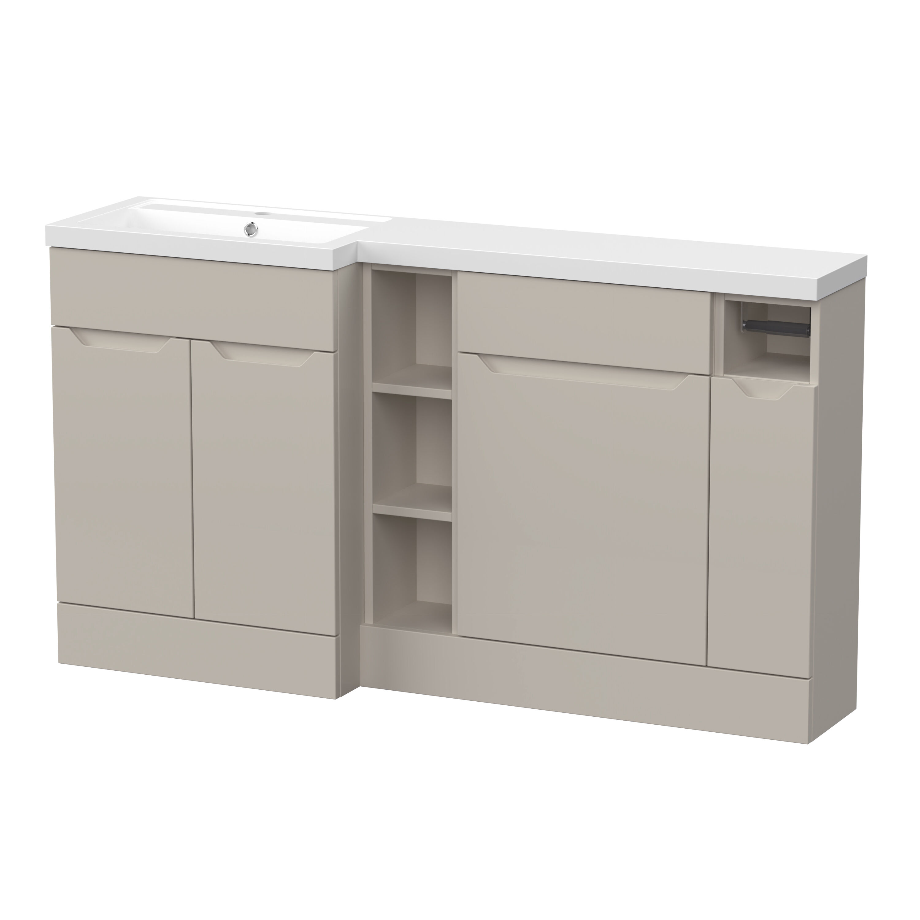 Nuie Lux Loave 1500mm Full Depth Combination Unit & L-Shaped Basin - Left Hand - Pebble Grey