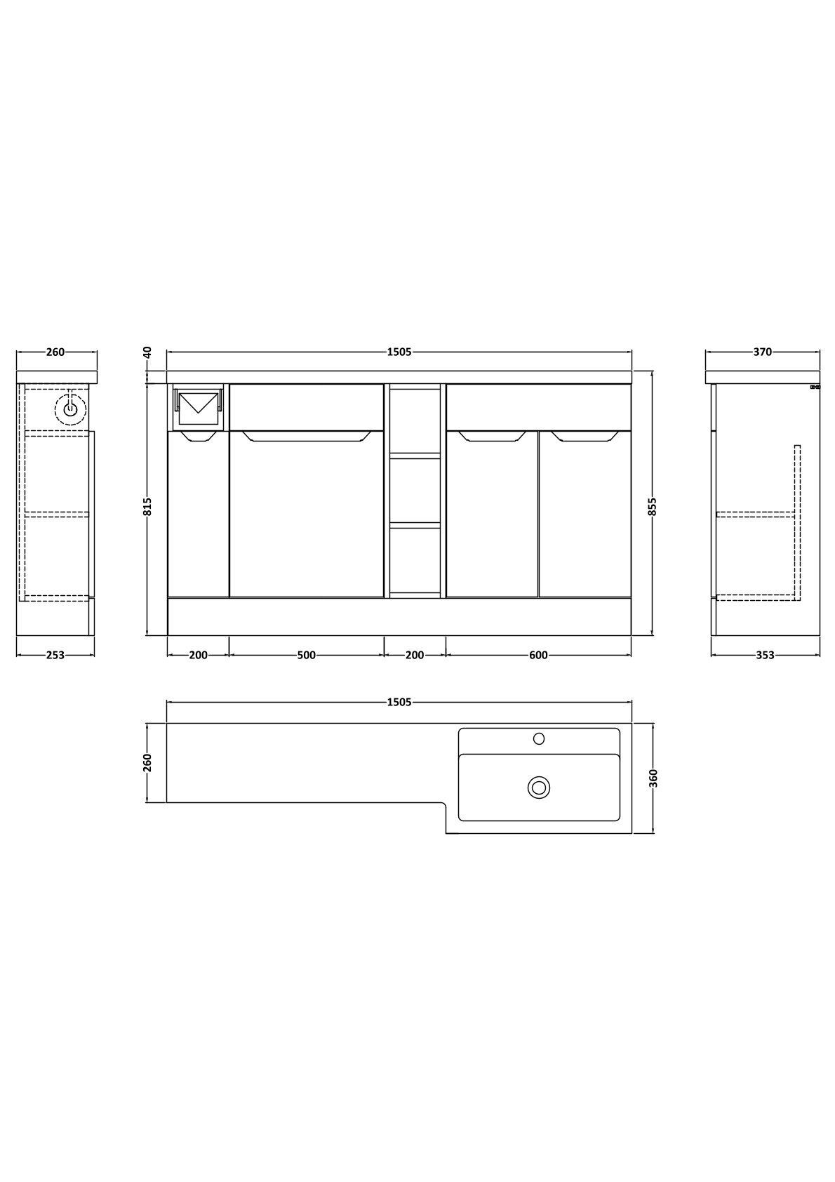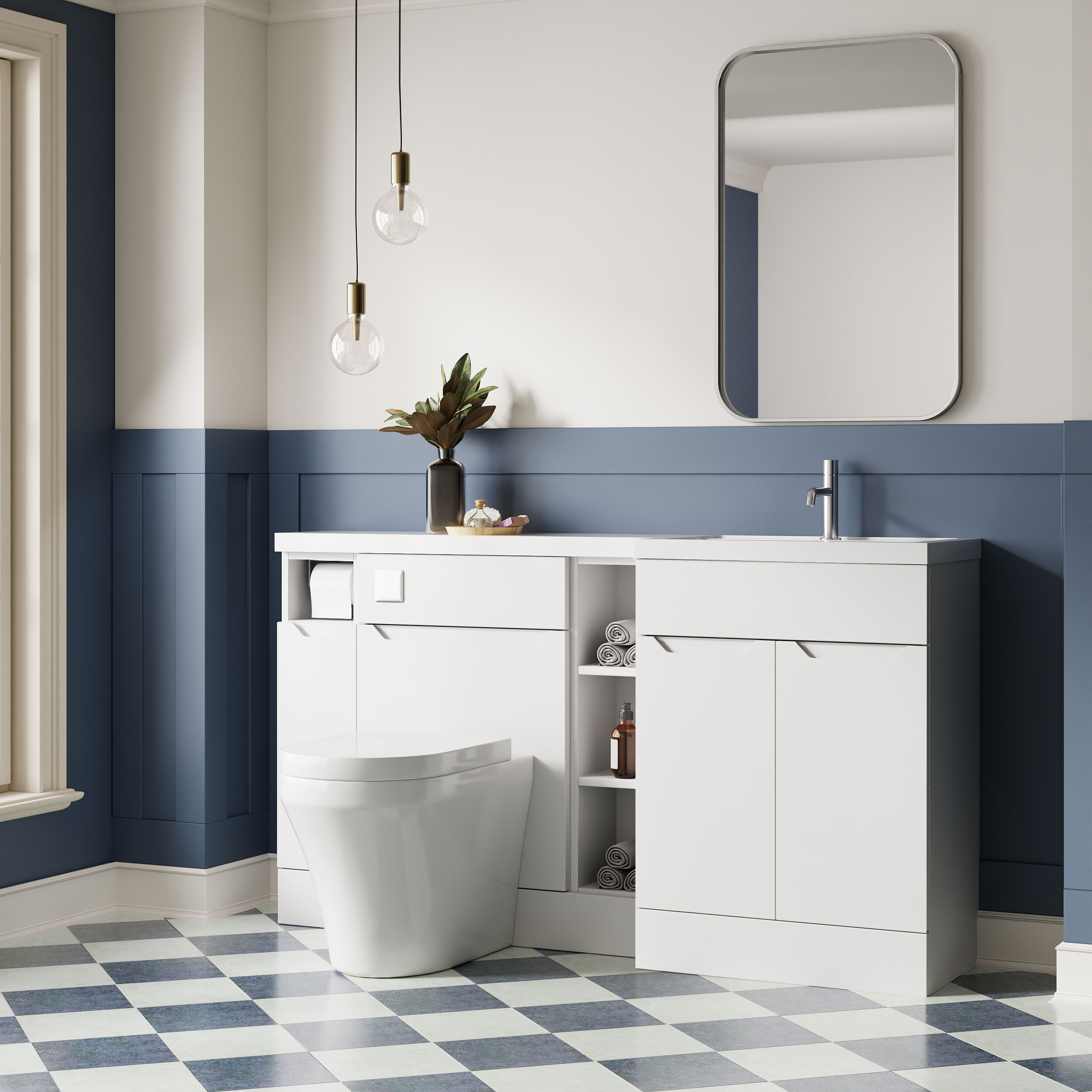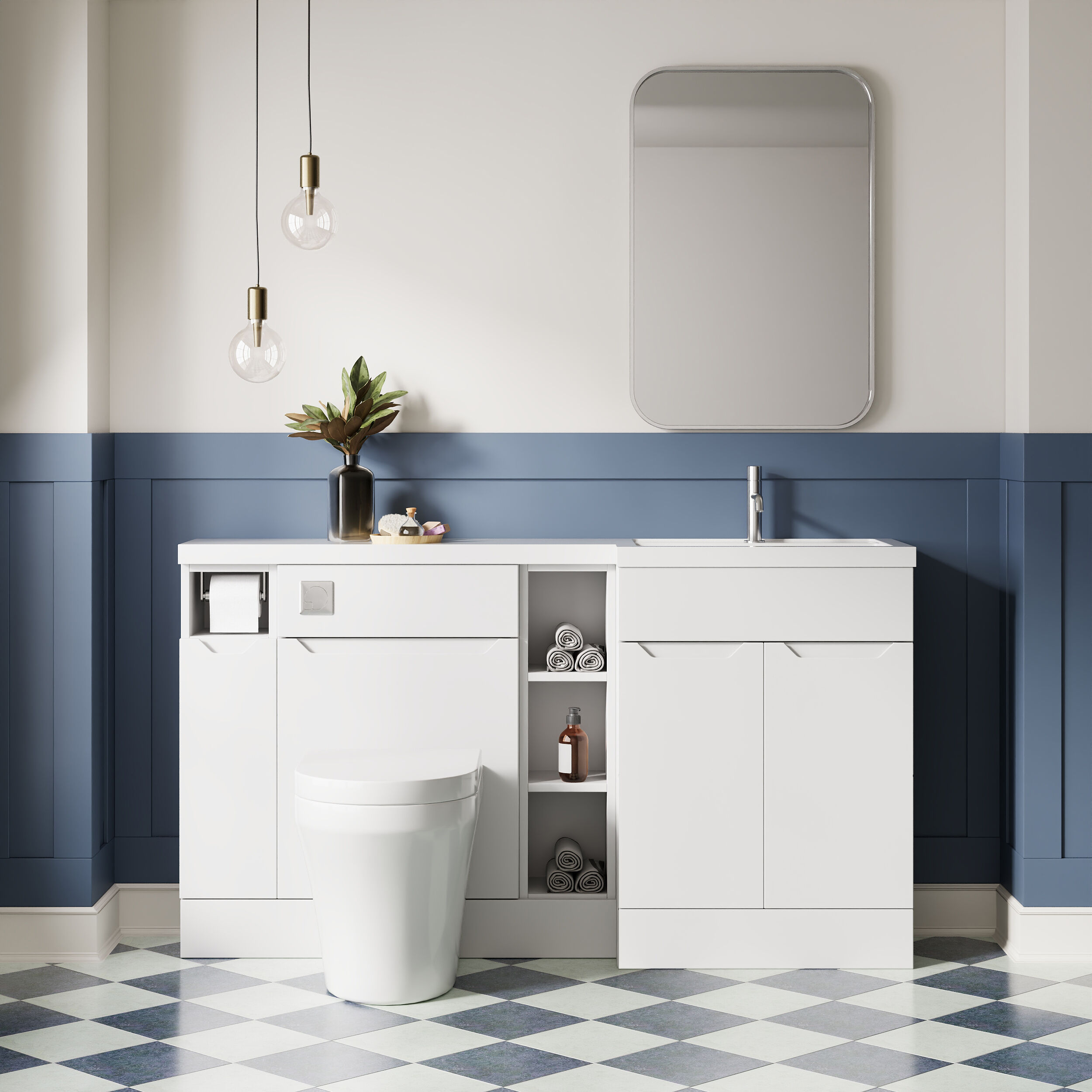 Nuie Lux Loave 1500mm Full Depth Combination Unit & L-Shaped Basin - Right Hand - Matt White