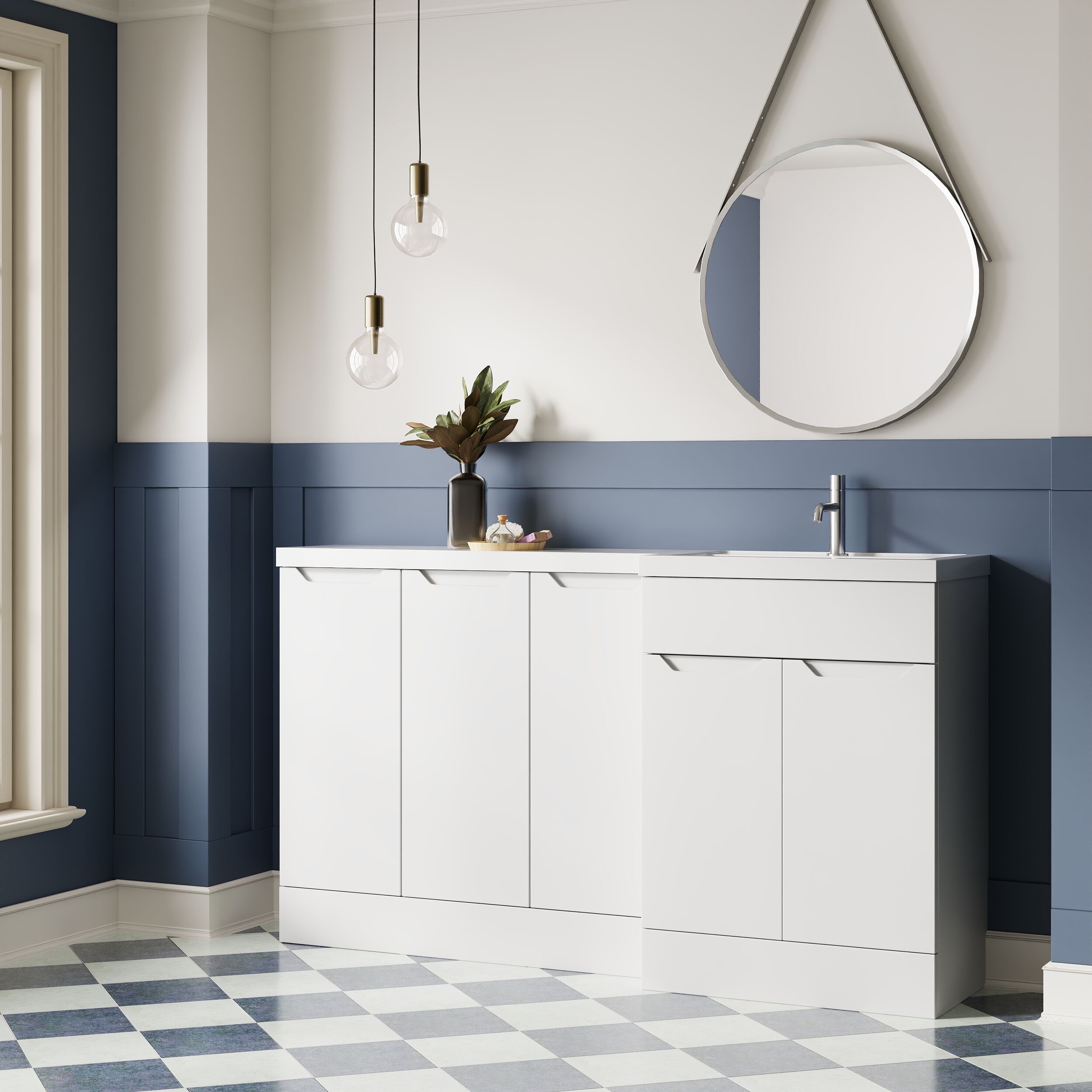 Nuie Lux Loave 1500mm Full Depth Combination Unit & L-Shaped Basin - Right Hand - Matt White