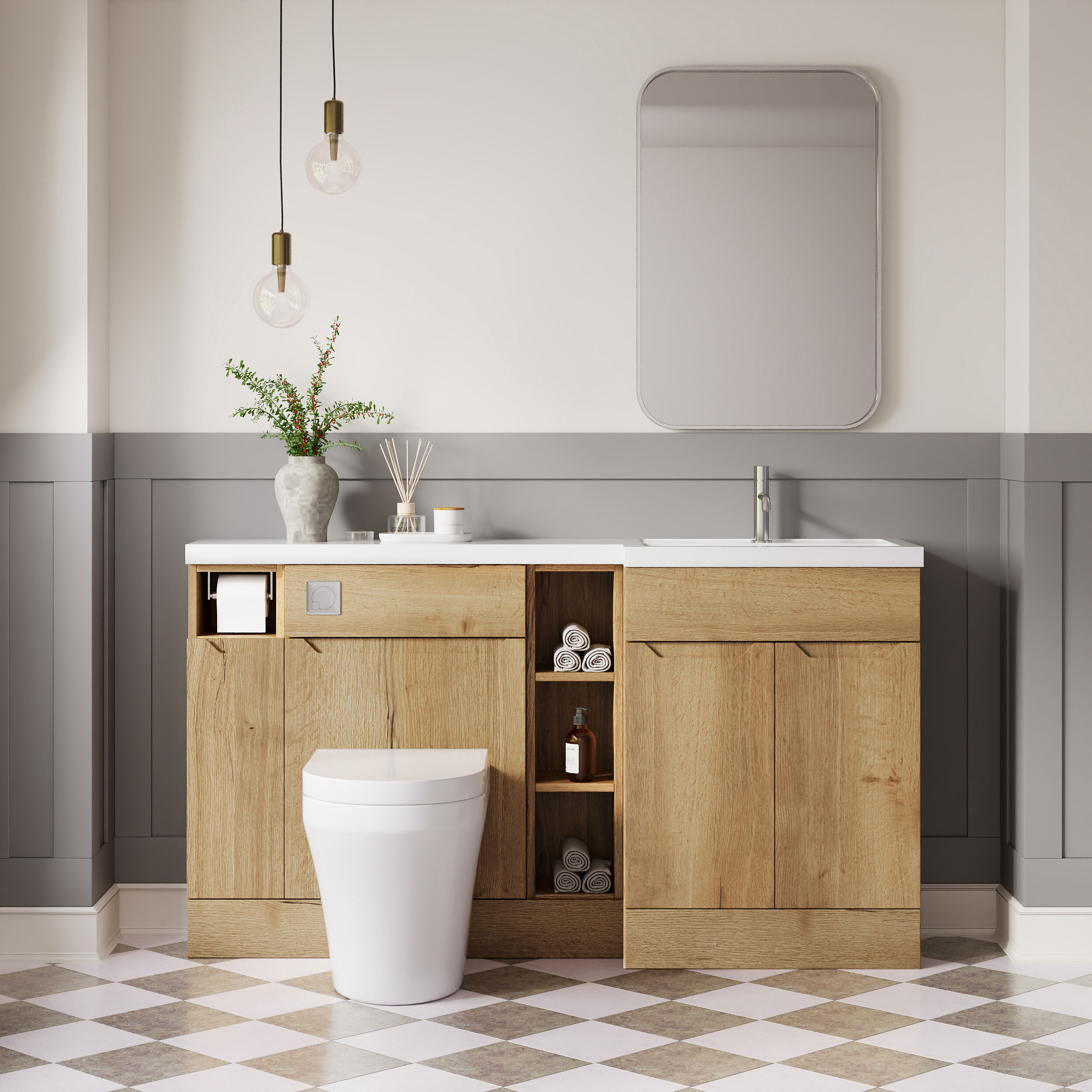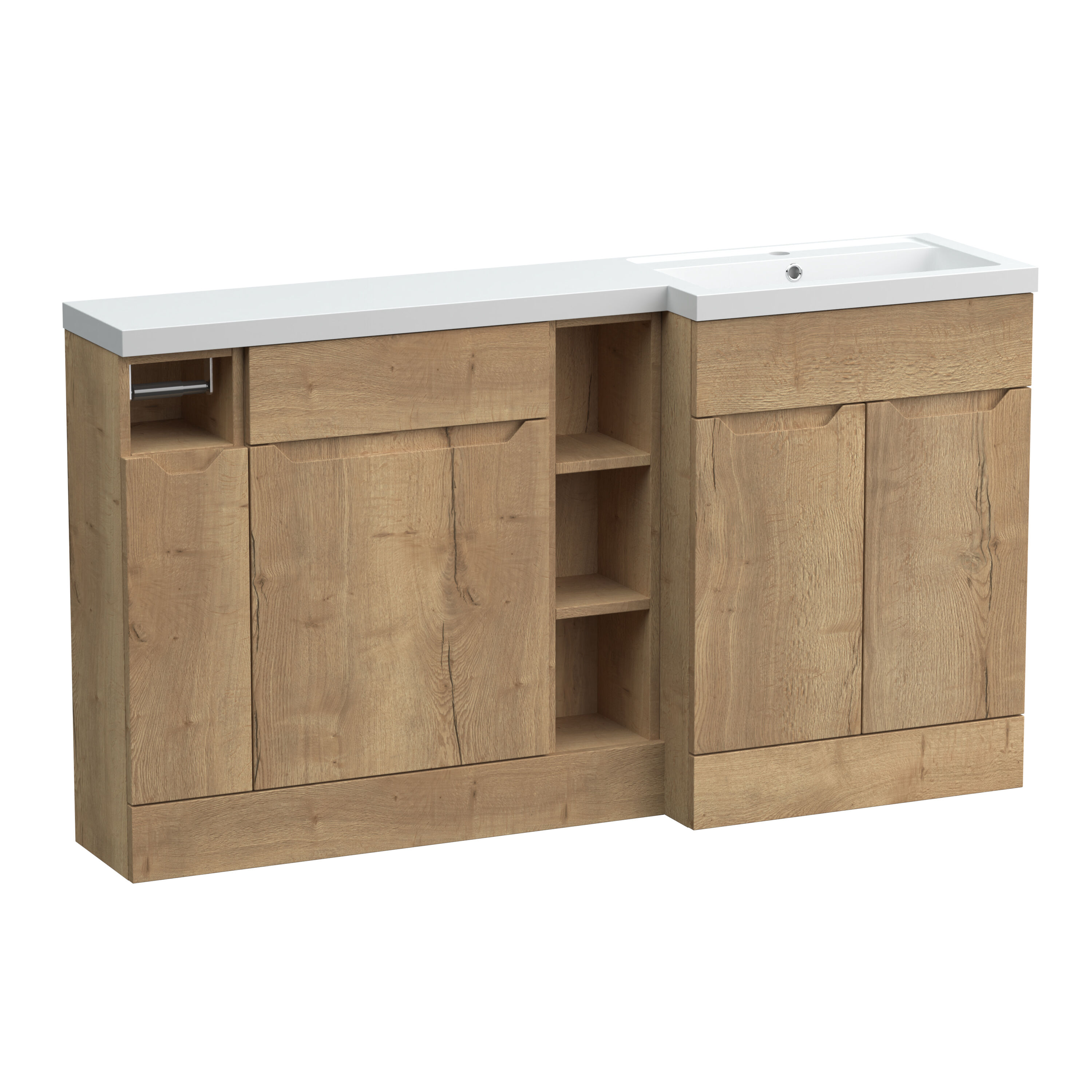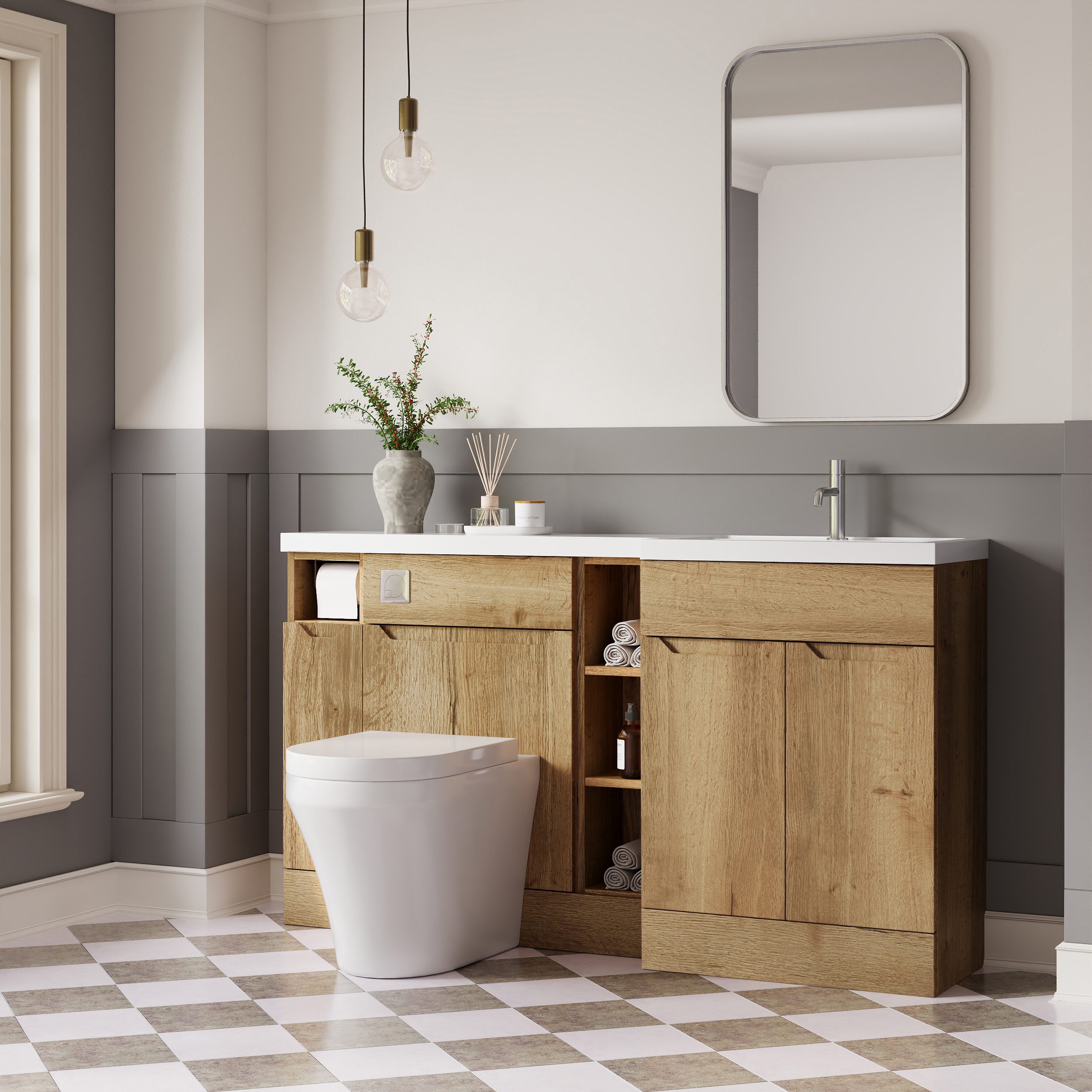Nuie Lux Loave 1500mm Full Depth Combination Unit & L-Shaped Basin - Right Hand - Halifax Oak