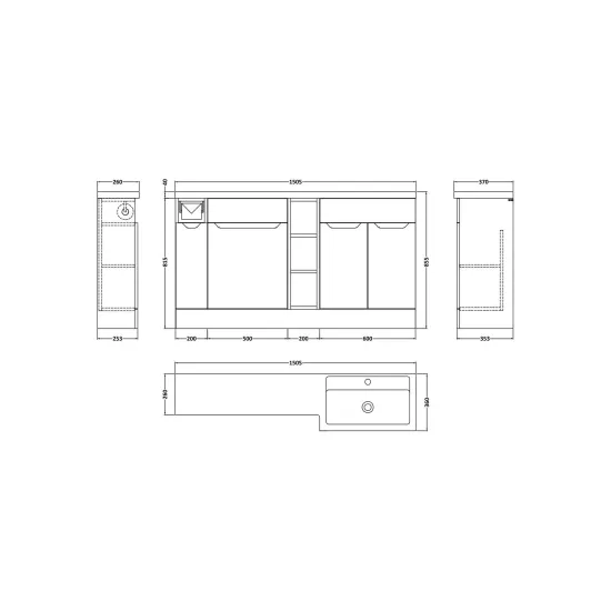 Nuie Lux Loave 1500mm Right Hand Handleless Combination Unit & L-Shaped Basin