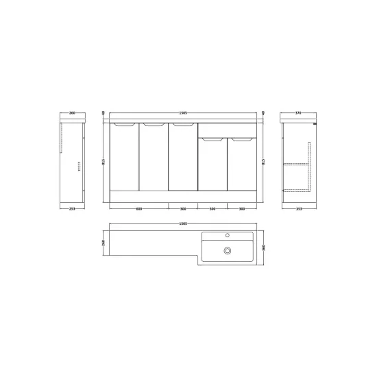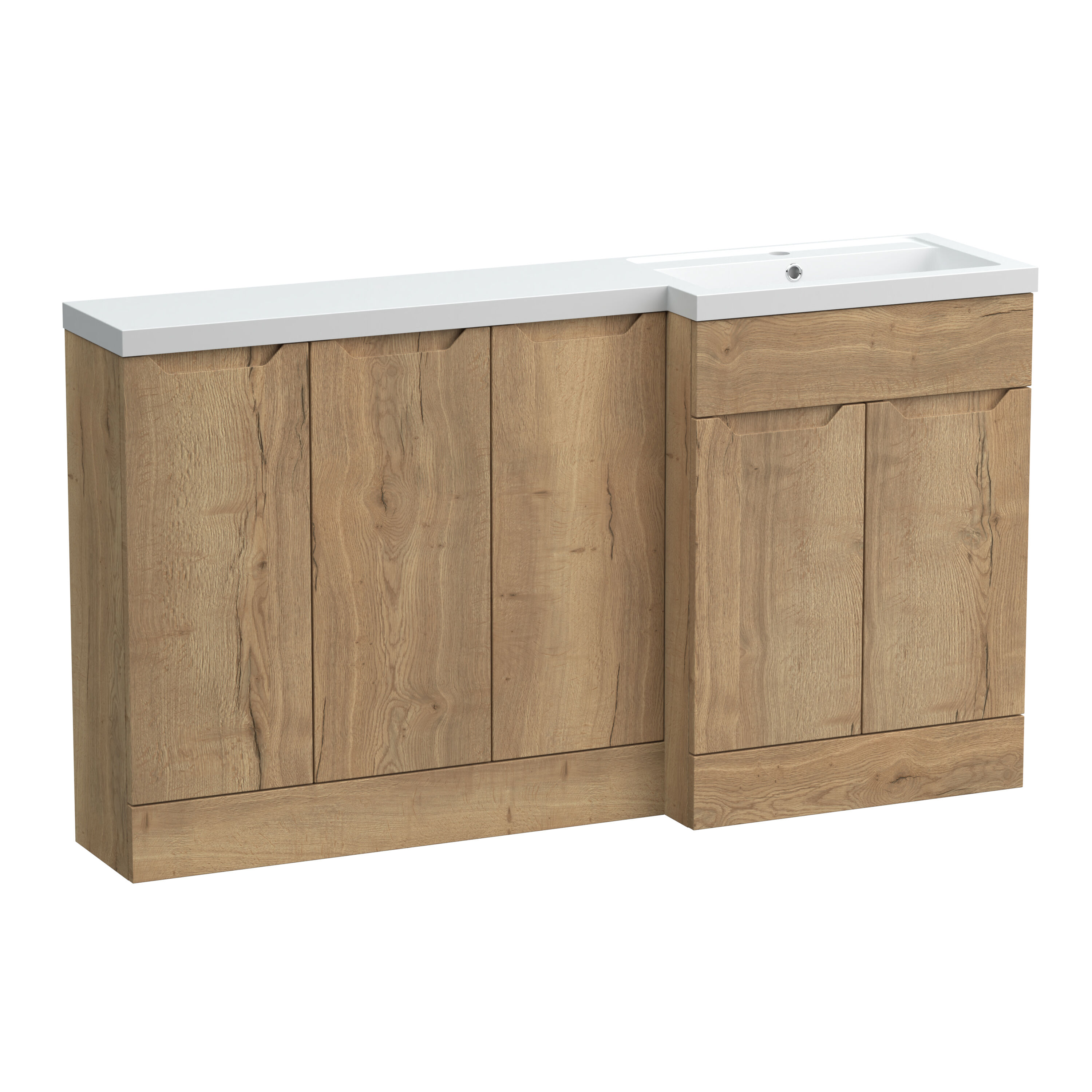 Nuie Lux Loave 1500mm Full Depth Combination Unit & L-Shaped Basin - Right Hand - Halifax Oak