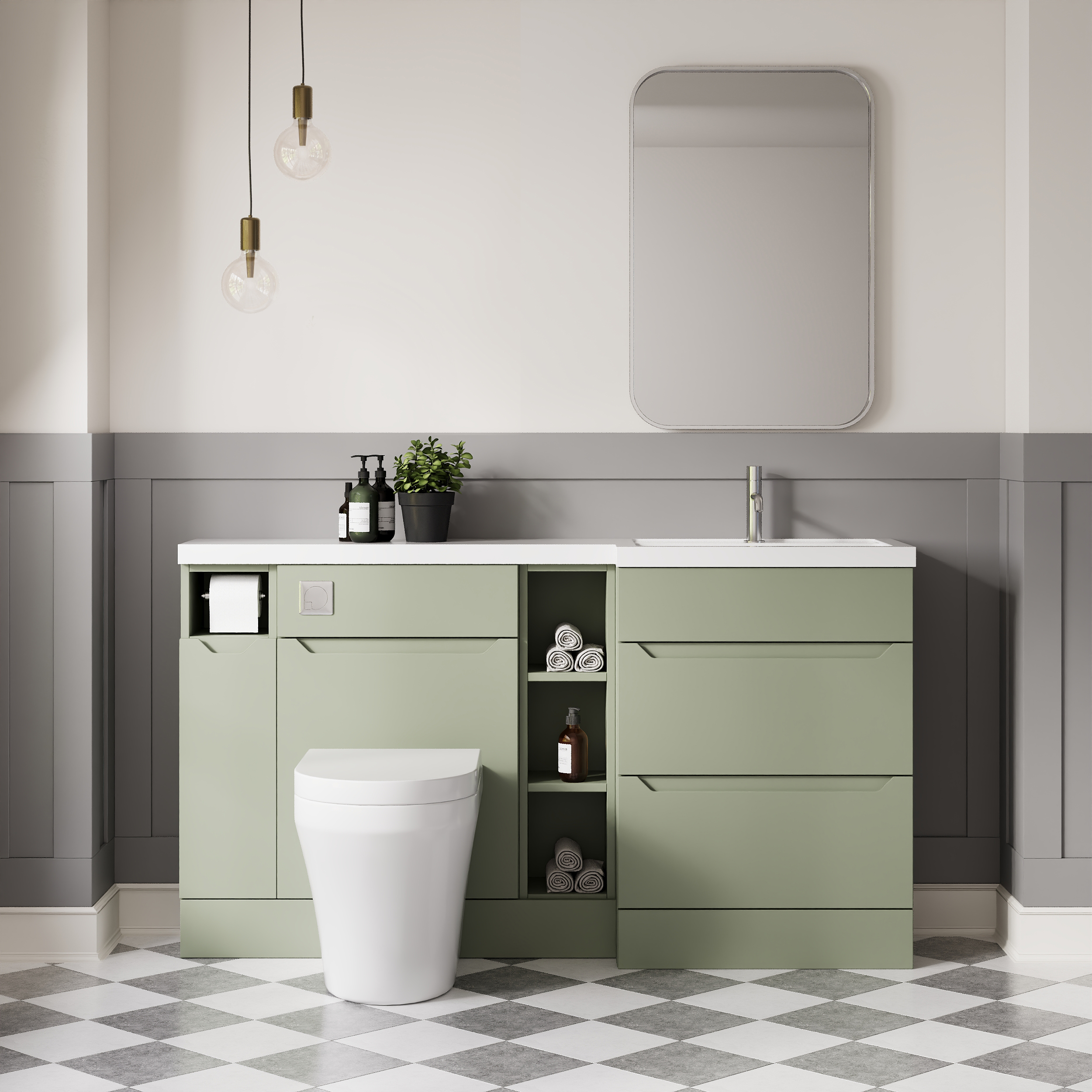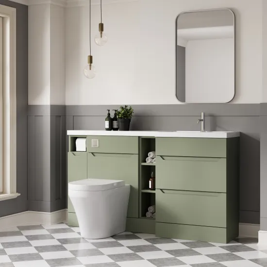 Nuie Lux Loave 1500mm Full Depth Combination Unit & L-Shaped Basin - Right Hand - Reed Green