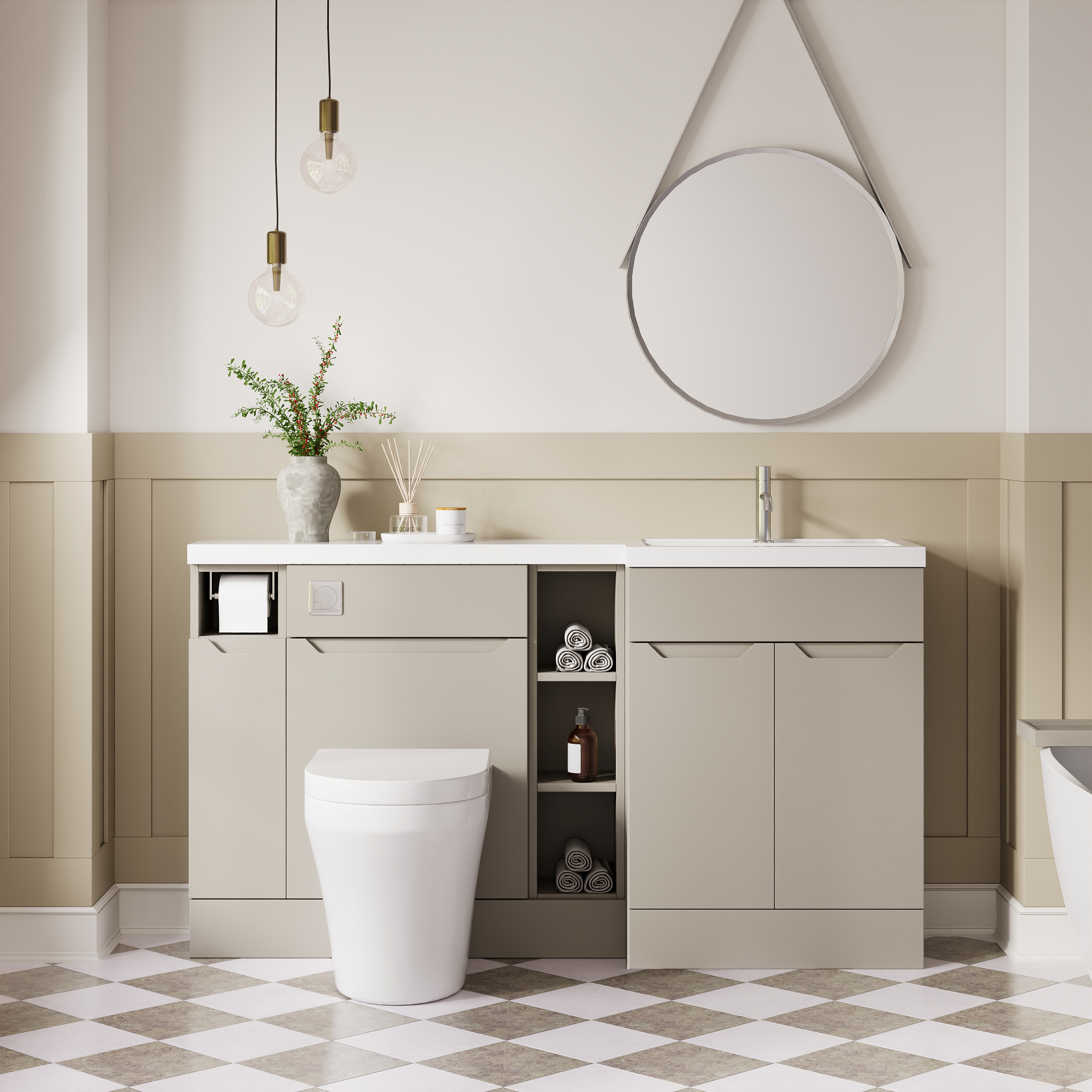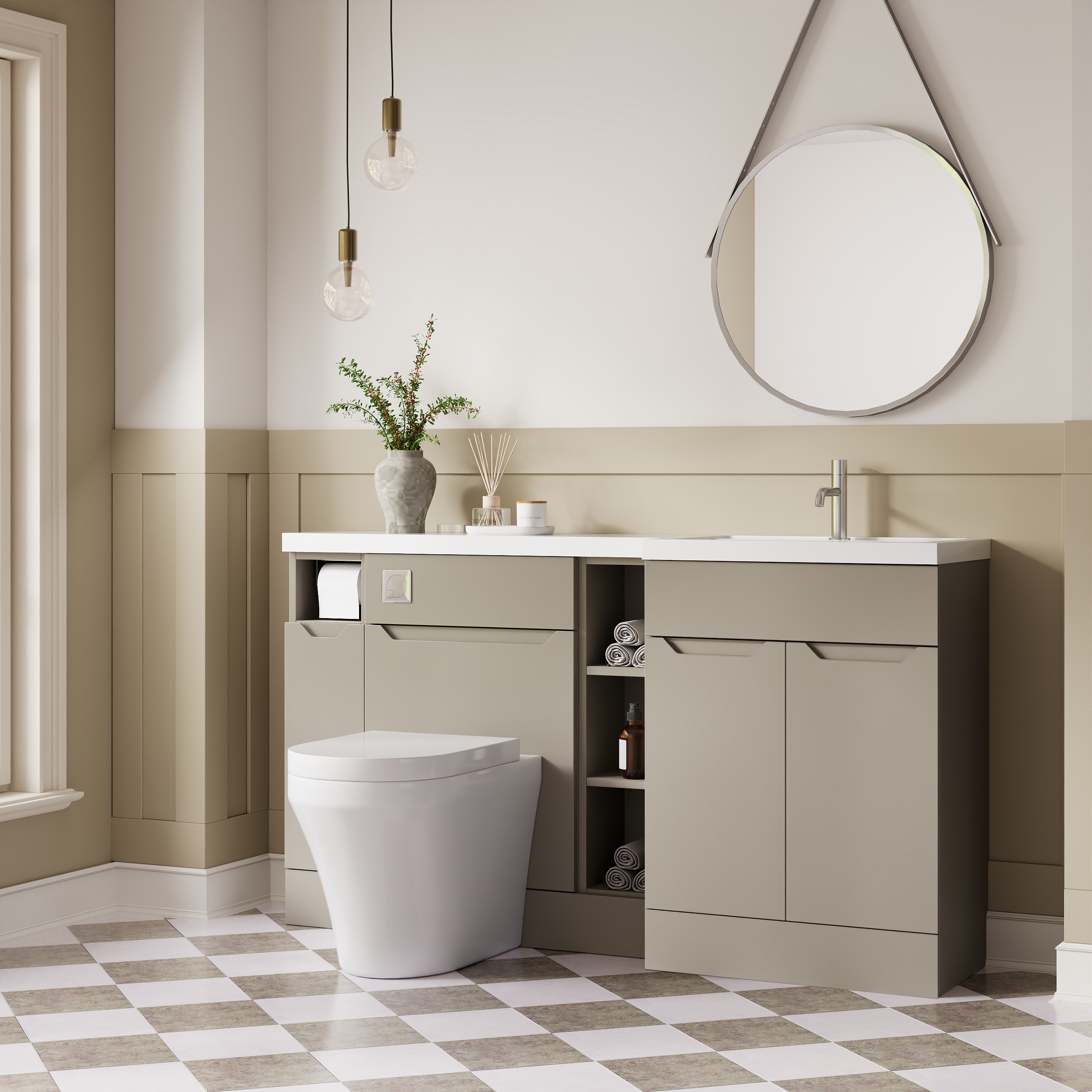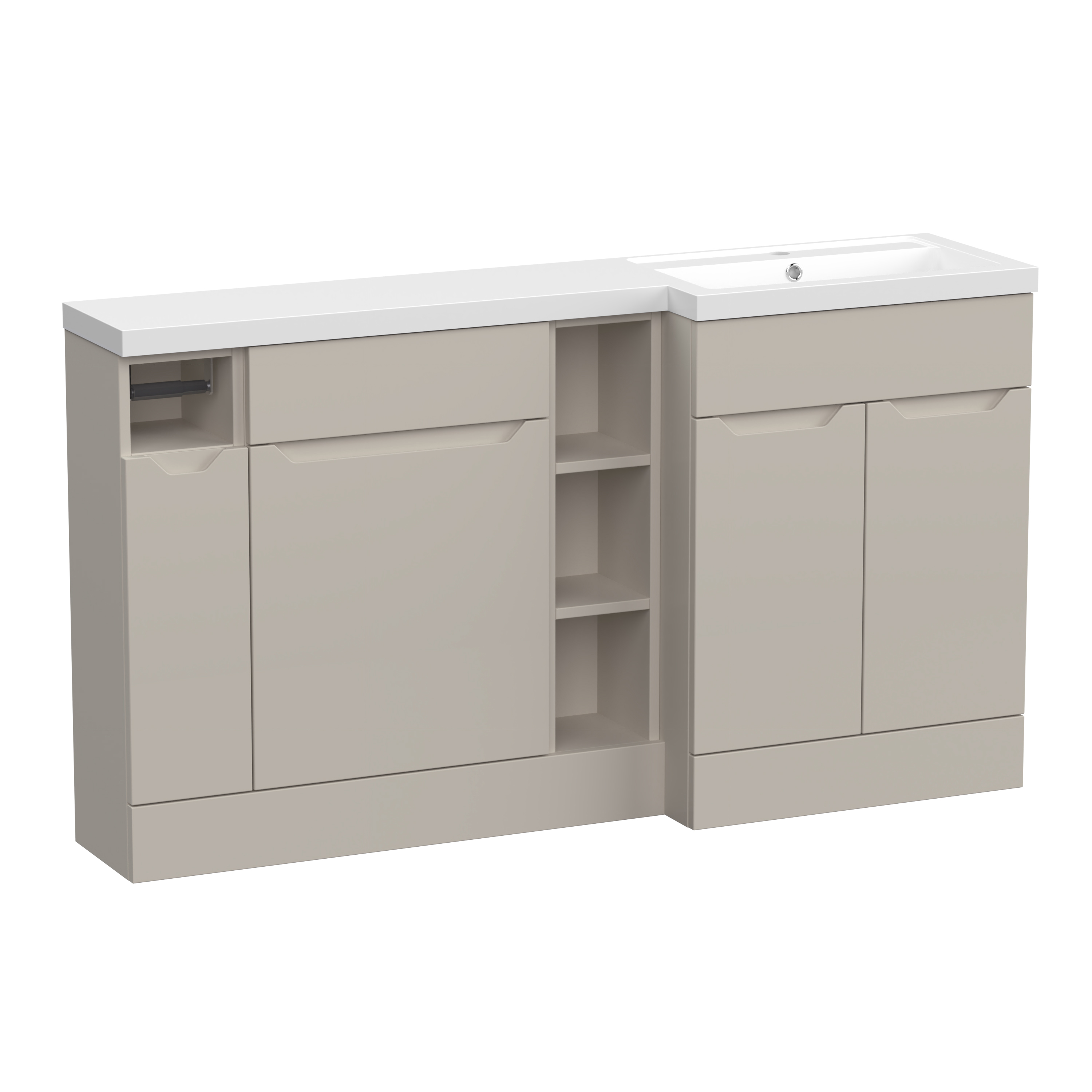 Nuie Lux Loave 1500mm Full Depth Combination Unit & L-Shaped Basin - Right Hand - Pebble Grey