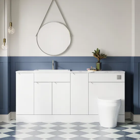 Nuie Lux Loave 1800mm Handleless Matt White Combination Unit With Basin & Soft Close