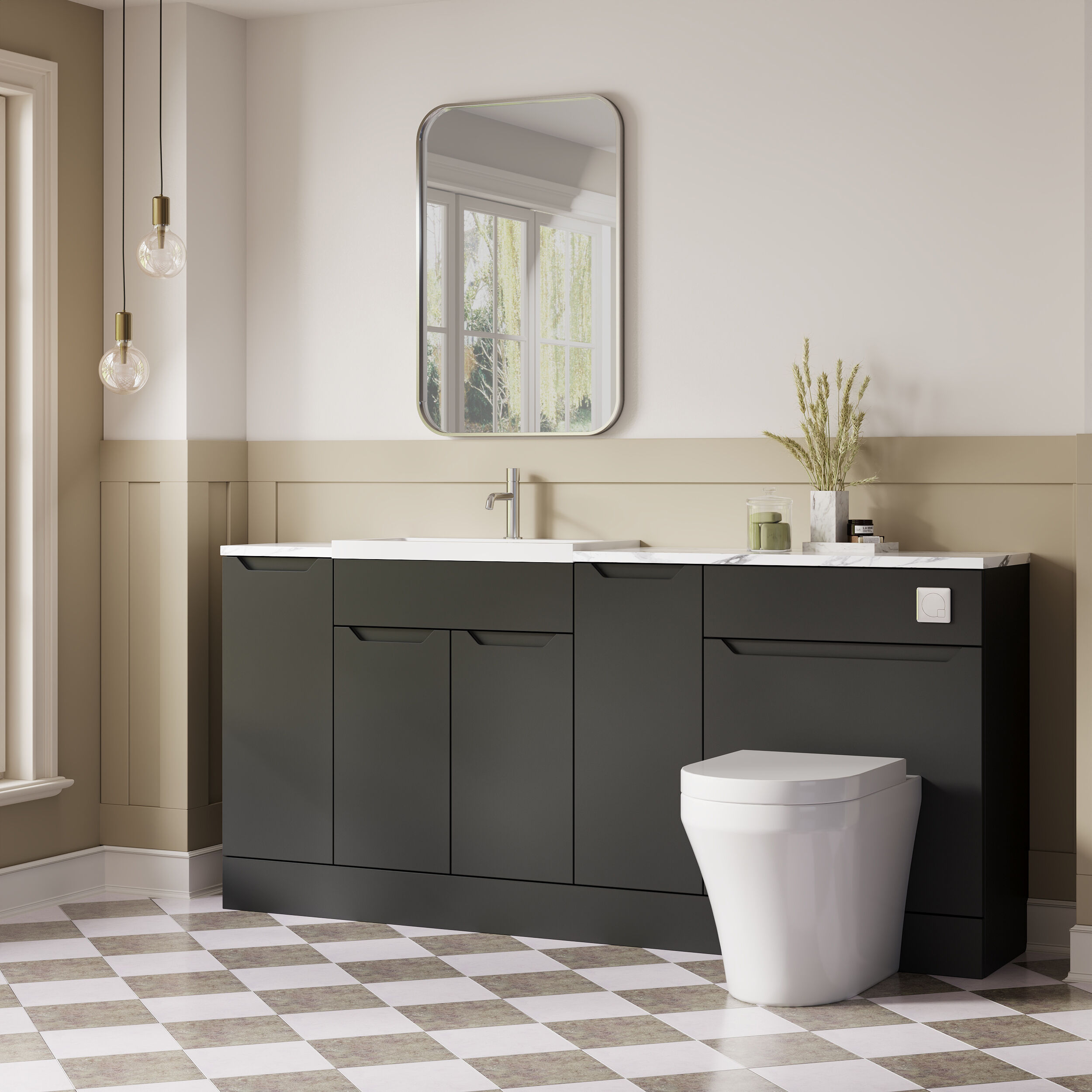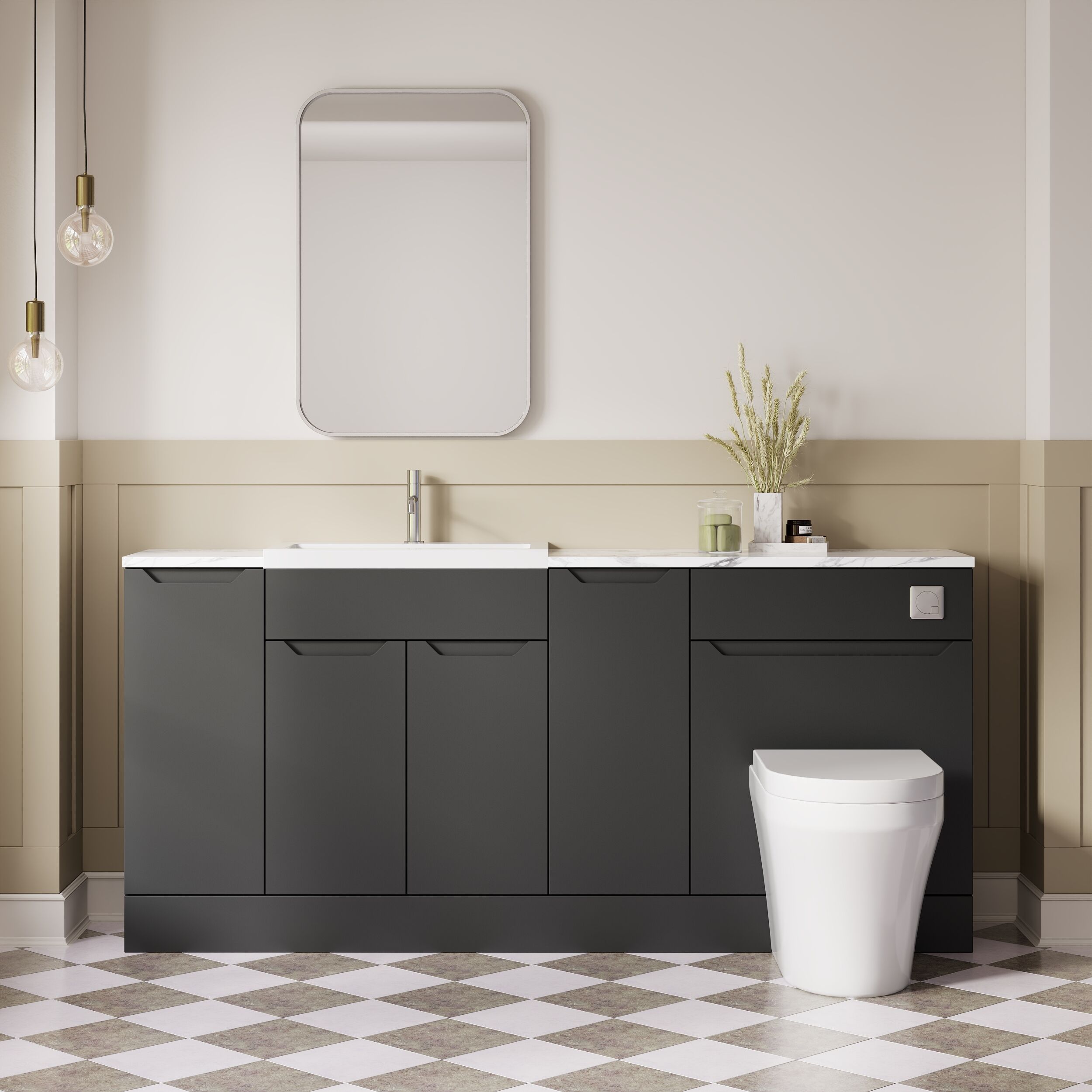 Nuie Lux Loave 1800mm Soft Black Handleless Combination Unit & Basin With Soft Close